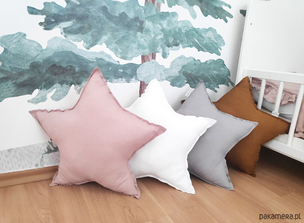 Lniana poduszka w kształcie gwiazdy będzie piękną dekoracją pokoju dziecka, Twojej sypialni lub salonu. Idealna na prezent. :) Uszyta ze zmiękczanego lnu, starannie wykończona. Doda uroku każdemu wnętrzu.
