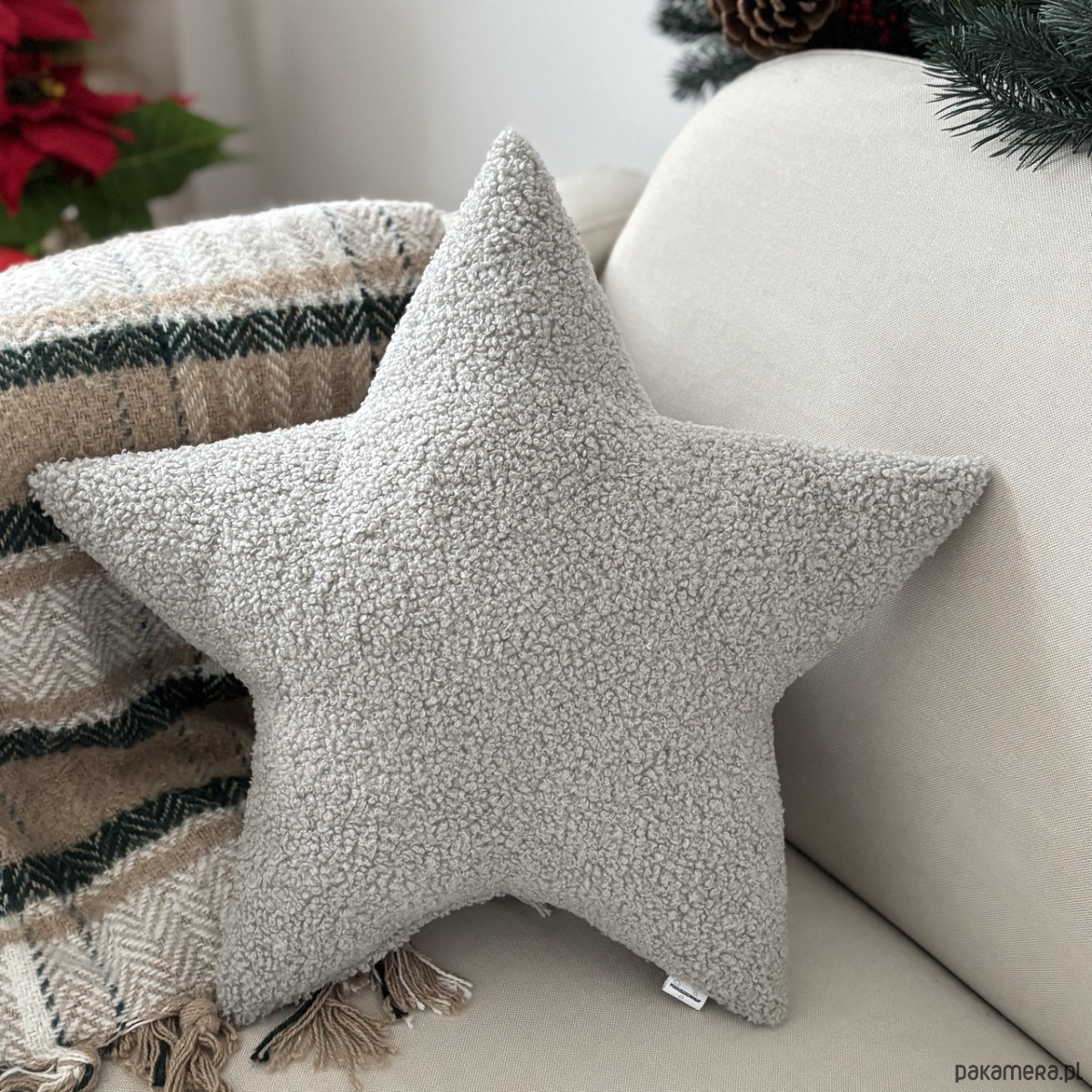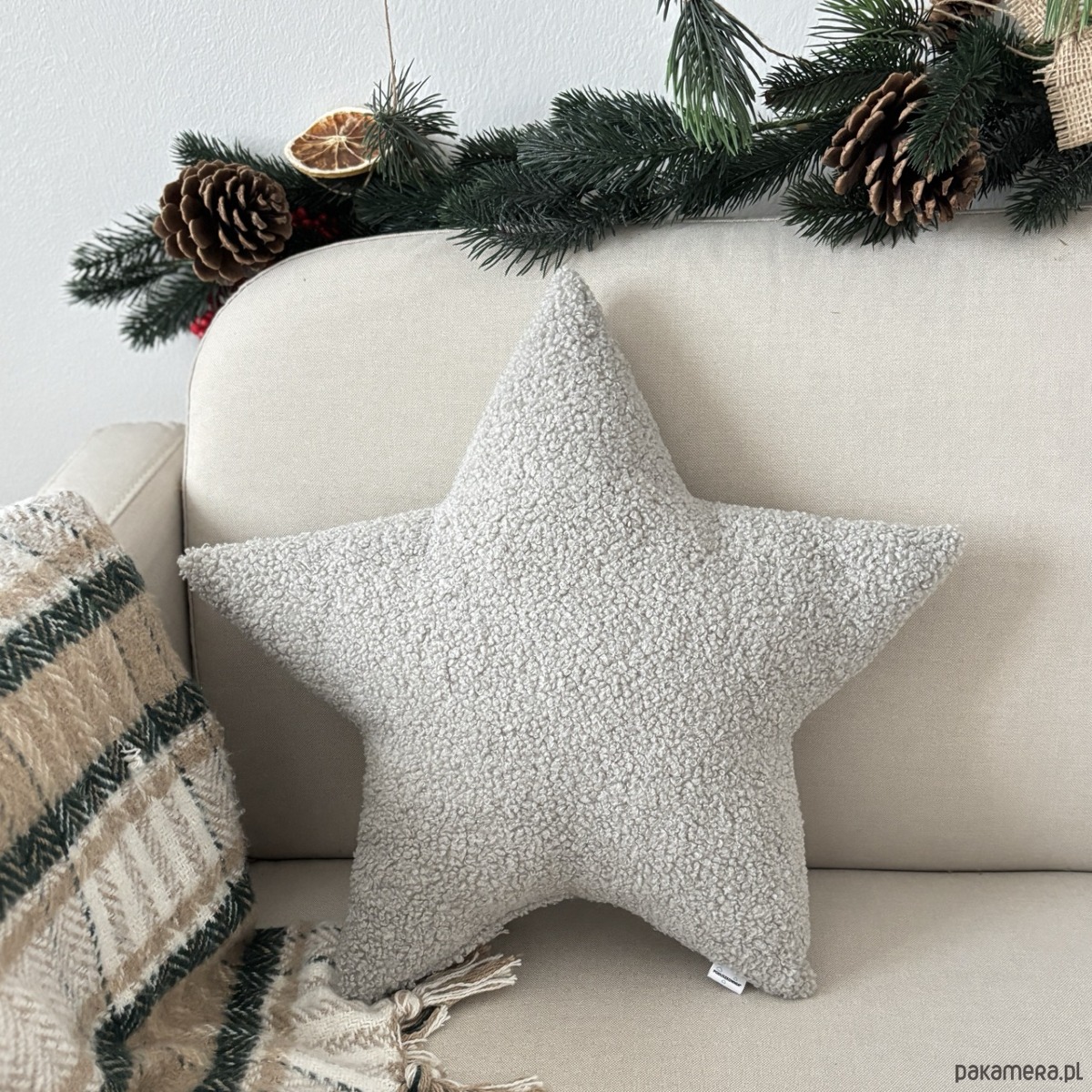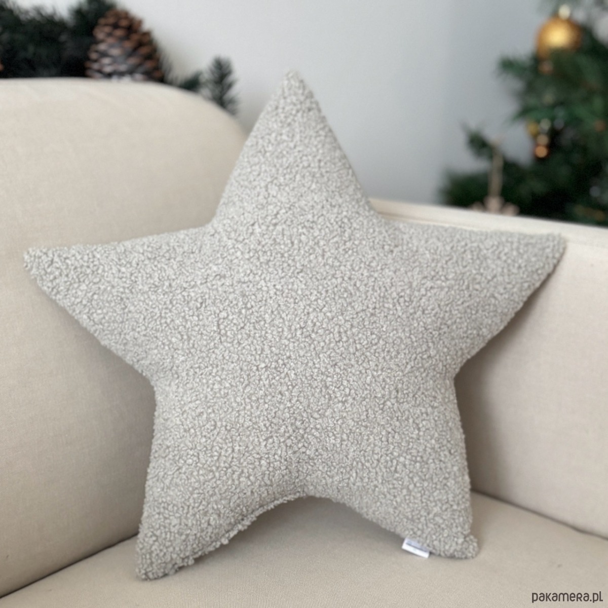 materiał: Poduszka Gwiazdka wykonana jest z miękkiego, przyjemnego materiału poliestrowego typu boucle. Materiał posiada certyfikat Oeko Tex, dlatego jest bezpieczny również dla dzieci. Pulchna, sprężysta i przyjemna.
