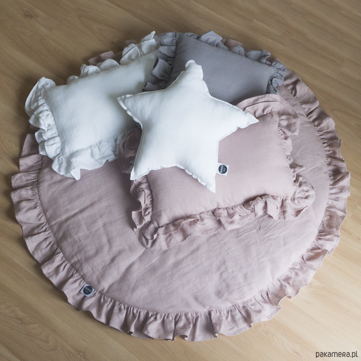 Lniana poduszka w kształcie gwiazdy będzie piękną dekoracją pokoju dziecka, Twojej sypialni lub salonu. Idealna na prezent. :) Uszyta ze zmiękczanego lnu, starannie wykończona. Doda uroku każdemu wnętrzu.