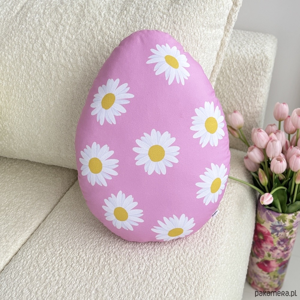 Wykonana z przyjemnego materiału poliestrowego, jest sprężysta i miękka, zapewniając komfort i przytulność. Poduszka Pisanka ma wymiary 45 cm długości na 32 cm szerokości. Jej piękny różowy pastelowy kolor z białymi kwiatkami margaretek doda uroku każdemu wnętrzu.