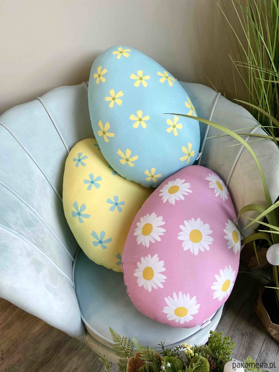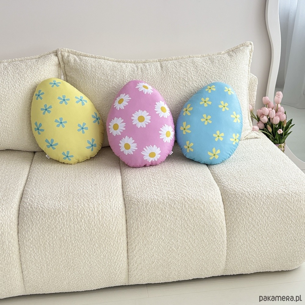 Piękna pastelowa poduszka w kształcie jajka – pisanki będzie niezwykłą dekoracją świąteczną podczas nadchodzących Wielkanocnych.