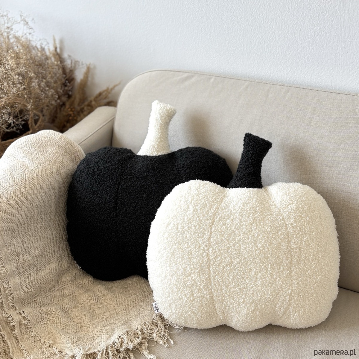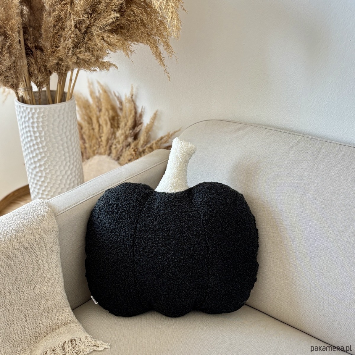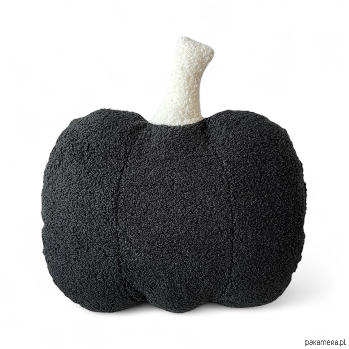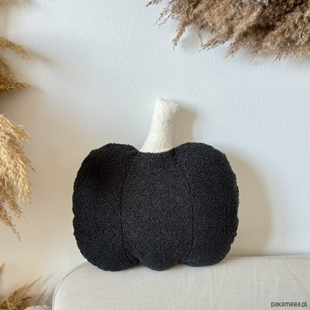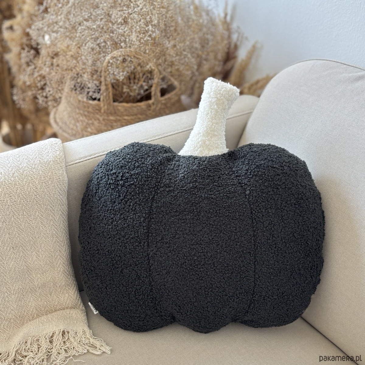 Poduszka jesienna w kształcie Dyni w czarnym kolorze wykonana z tkaniny boucle baranka