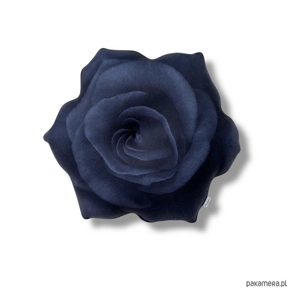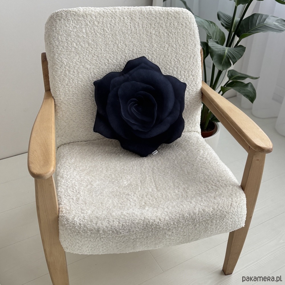 Poduszka w kształcie kwiatu róży w czarno-atramentowym kolorze to elegancki i subtelny dodatek do wnętrza, który może dodać uroku i stylu każdemu pomieszczeniu.