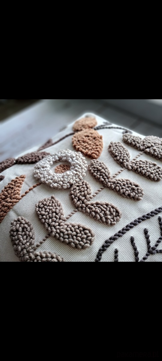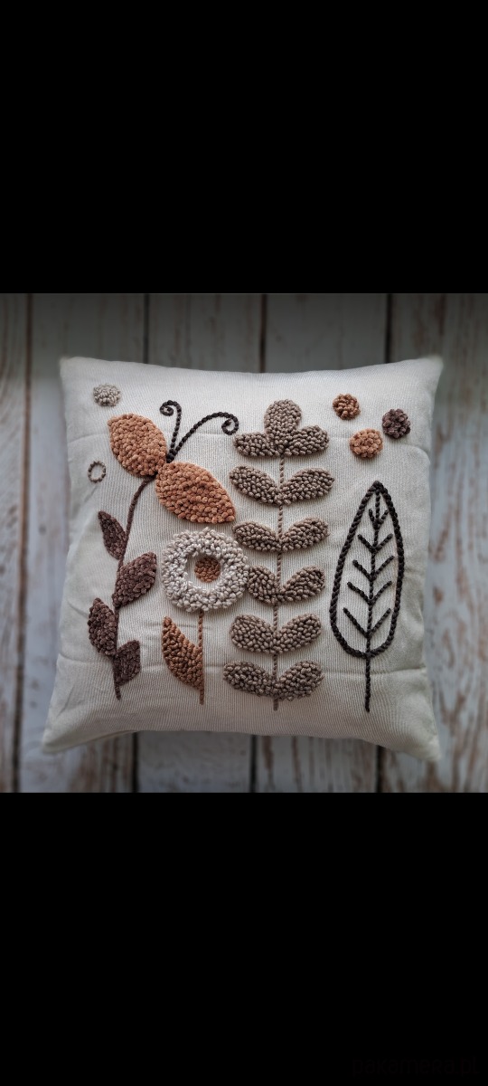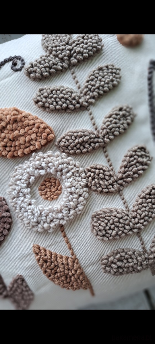 Poduszka stworzona metodą haftu pętelkowego- punch needle z użyciem najlepszej jakościowo włóczki.