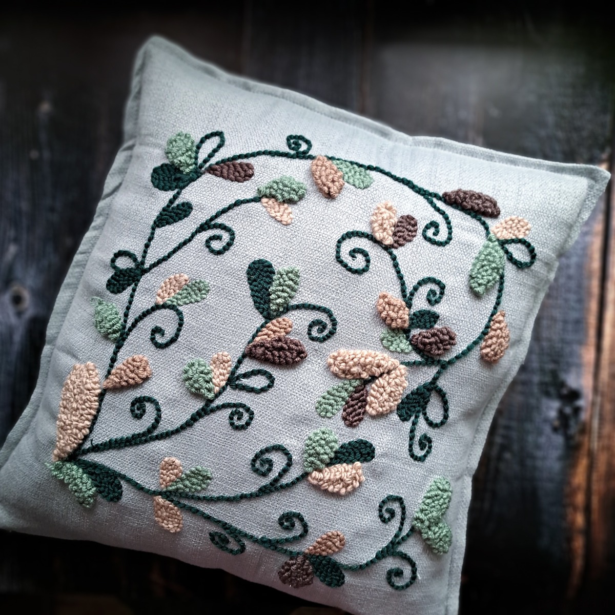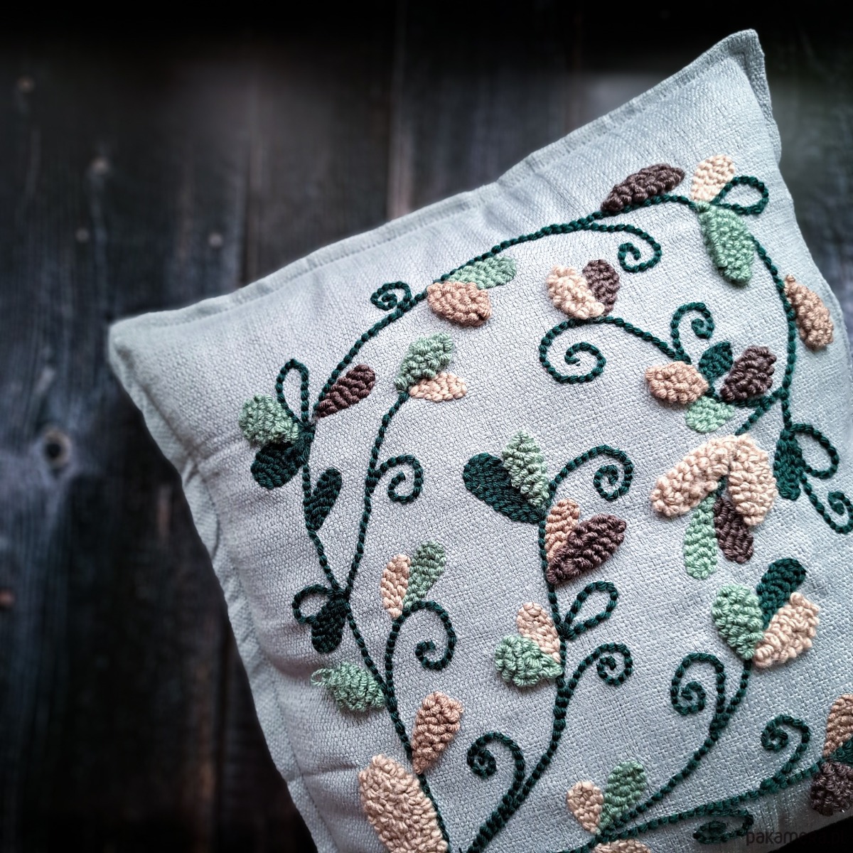 Poduszka stworzona metodą haftu pętelkowego- punch needle z użyciem najlepszej jakościowo włóczki.