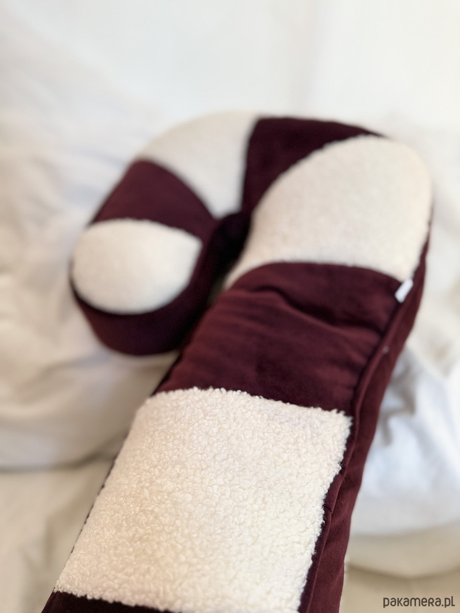 Poczuj magię świąt z naszymi poduchami! Poduszka laska cukrowa wino to idealny dodatek do Twojego domu, aby stworzyć niepowtarzalną, przytulną atmosferę. Poduszka wypełniona jest kulką silikonową, odpowiednią dla alergików. Poduszka została wykonana z połączenia tkaniny welurowej w kolorze bordowym oraz tkaniny barankowej w kolorze ecru.