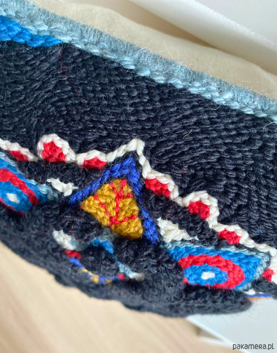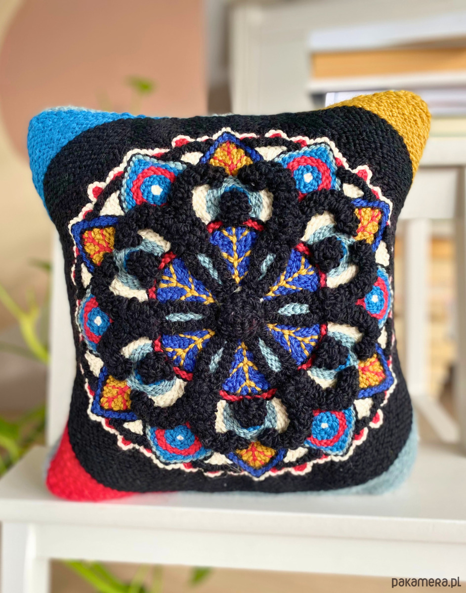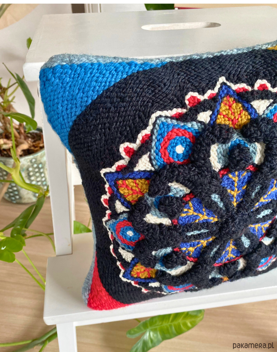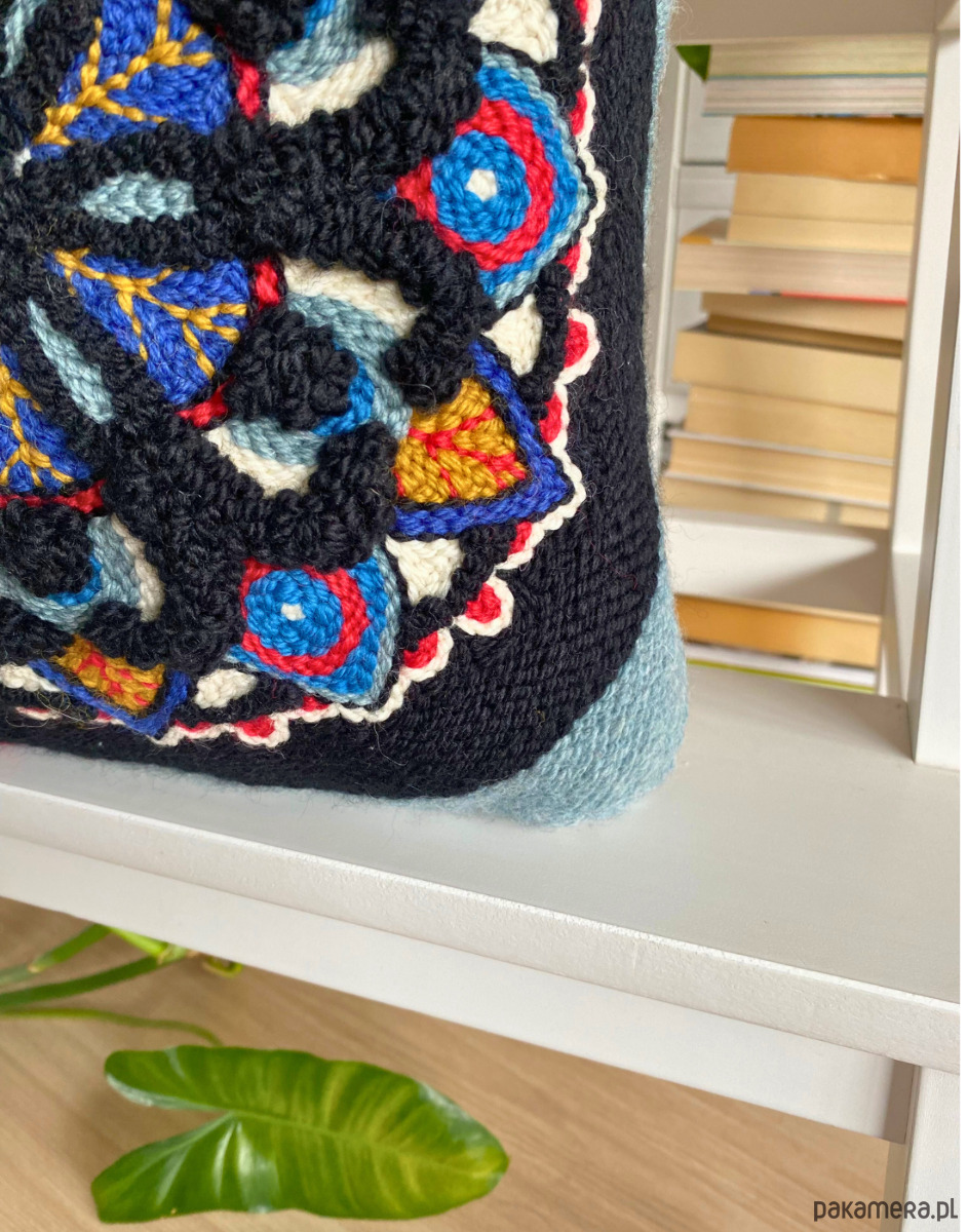 - poduszka dodatkowo została dekoracyjnie obszyta włóczką