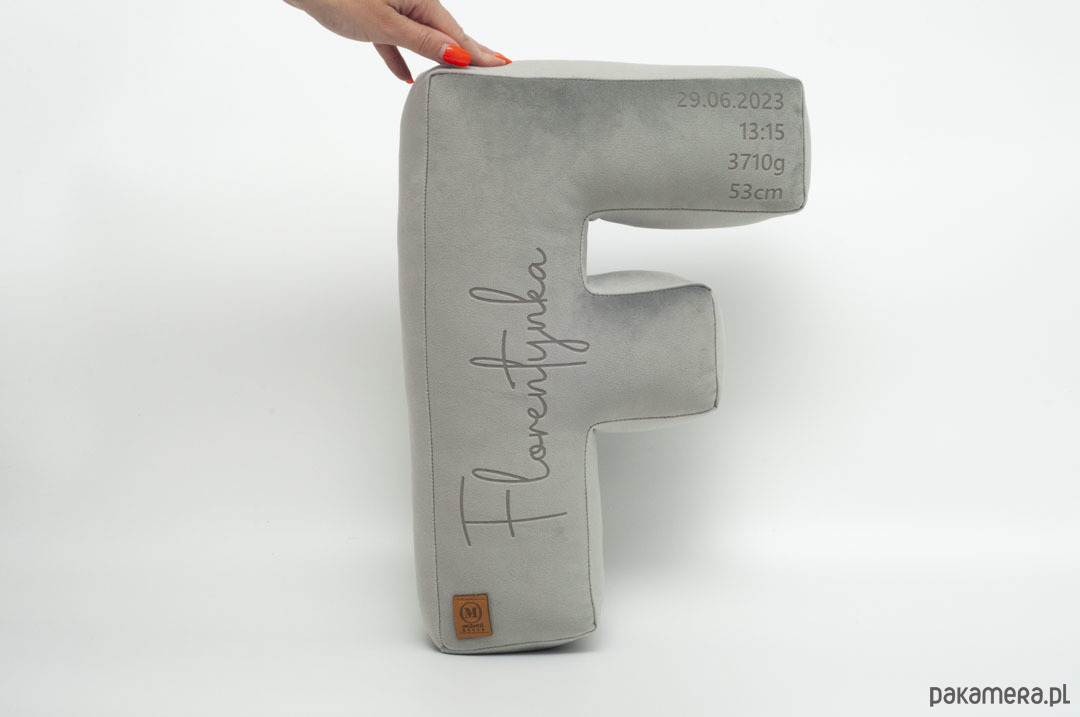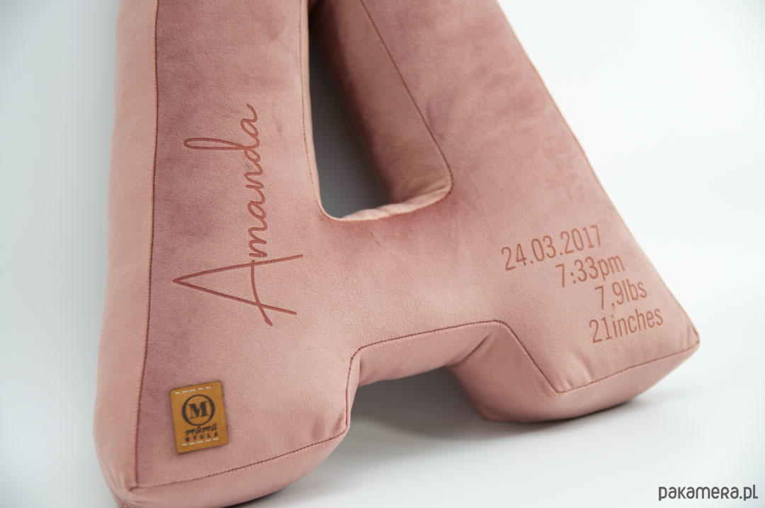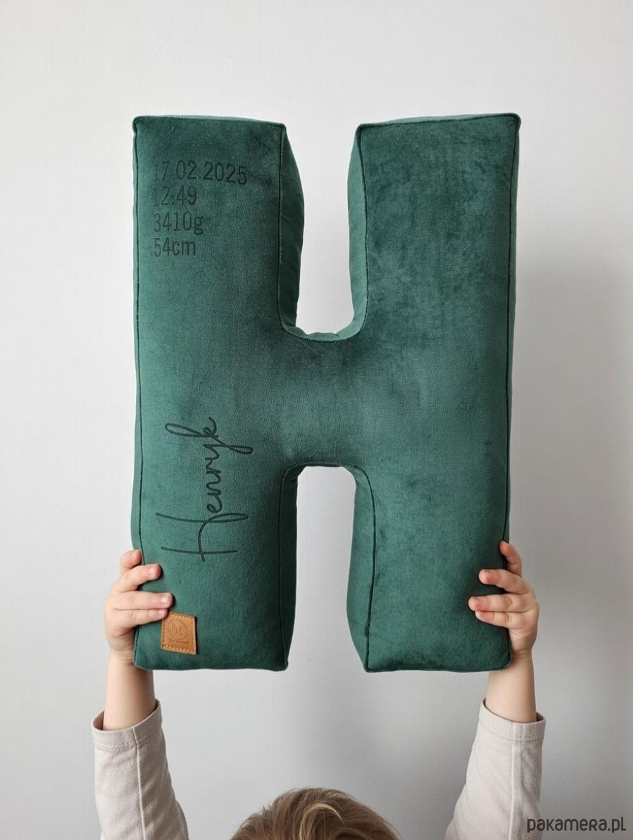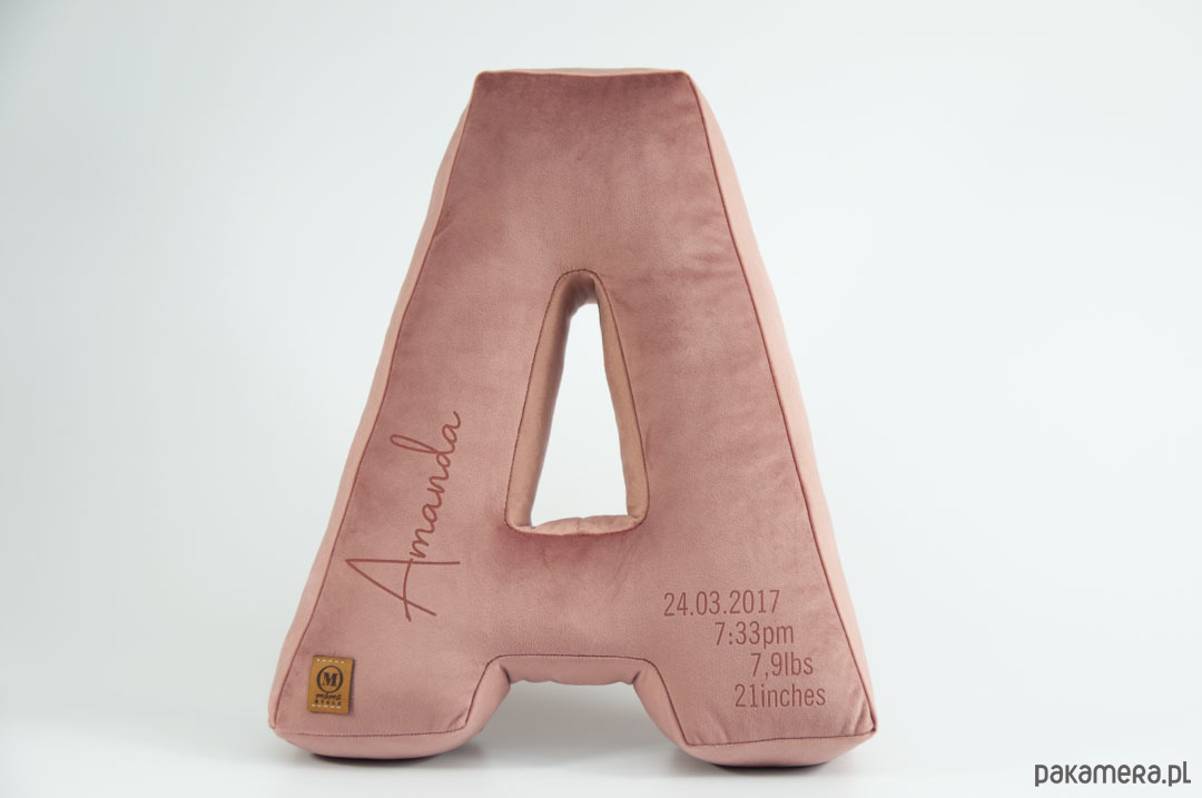 Poduszka metryczka litera, literka velvetowa, inicjały - kolor do wyboru