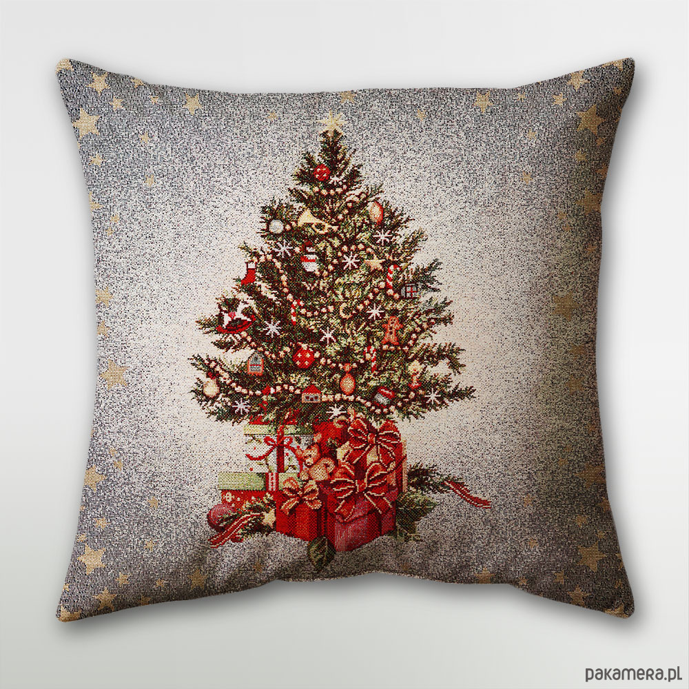 Śliczna poduszka z choinką. Z przodu gobelinowy wzór, z tyłu pikowany velvet. Wysokość - szerokość ok. 40 cm.