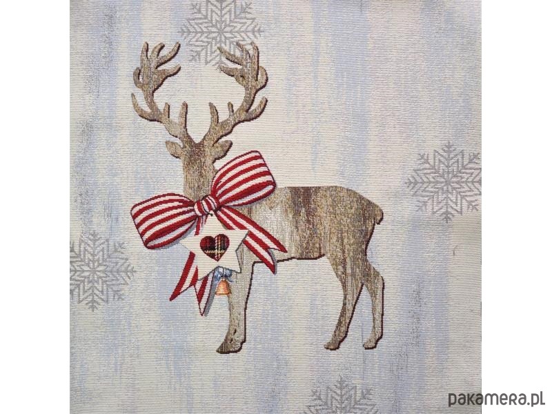 Śliczna poduszka z jelonkiem. Z przodu gobelinowy wzór, z tyłu pikowany velvet. Wysokość - szerokość ok. 40 cm.