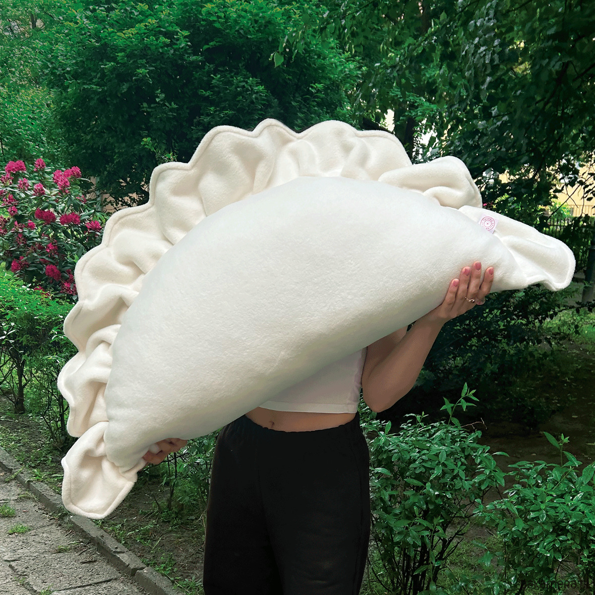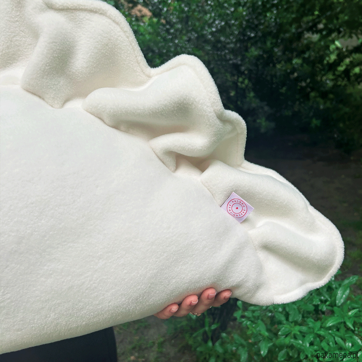 Poduszka Pieróg została uszyta z jasnego, milutkiego polaru według naszego projektu w małej, zaprzyjaźnionej pracowni - szyta ręcznie, stąd każda poduszka ma swój własny, unikalny urok. Wypełniona jest antyalergiczną czesanką silikonową. Poduszka ma wymiary ok. 100x45 cm. Zalecamy pranie ręczne.