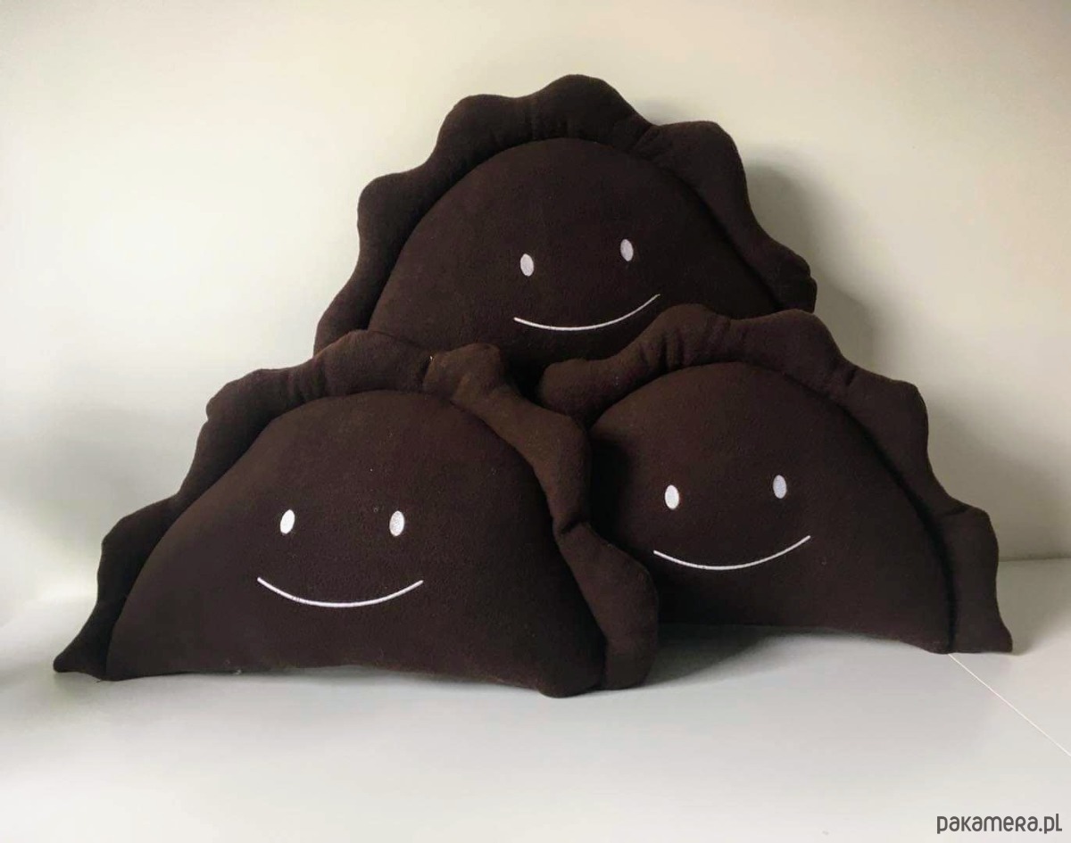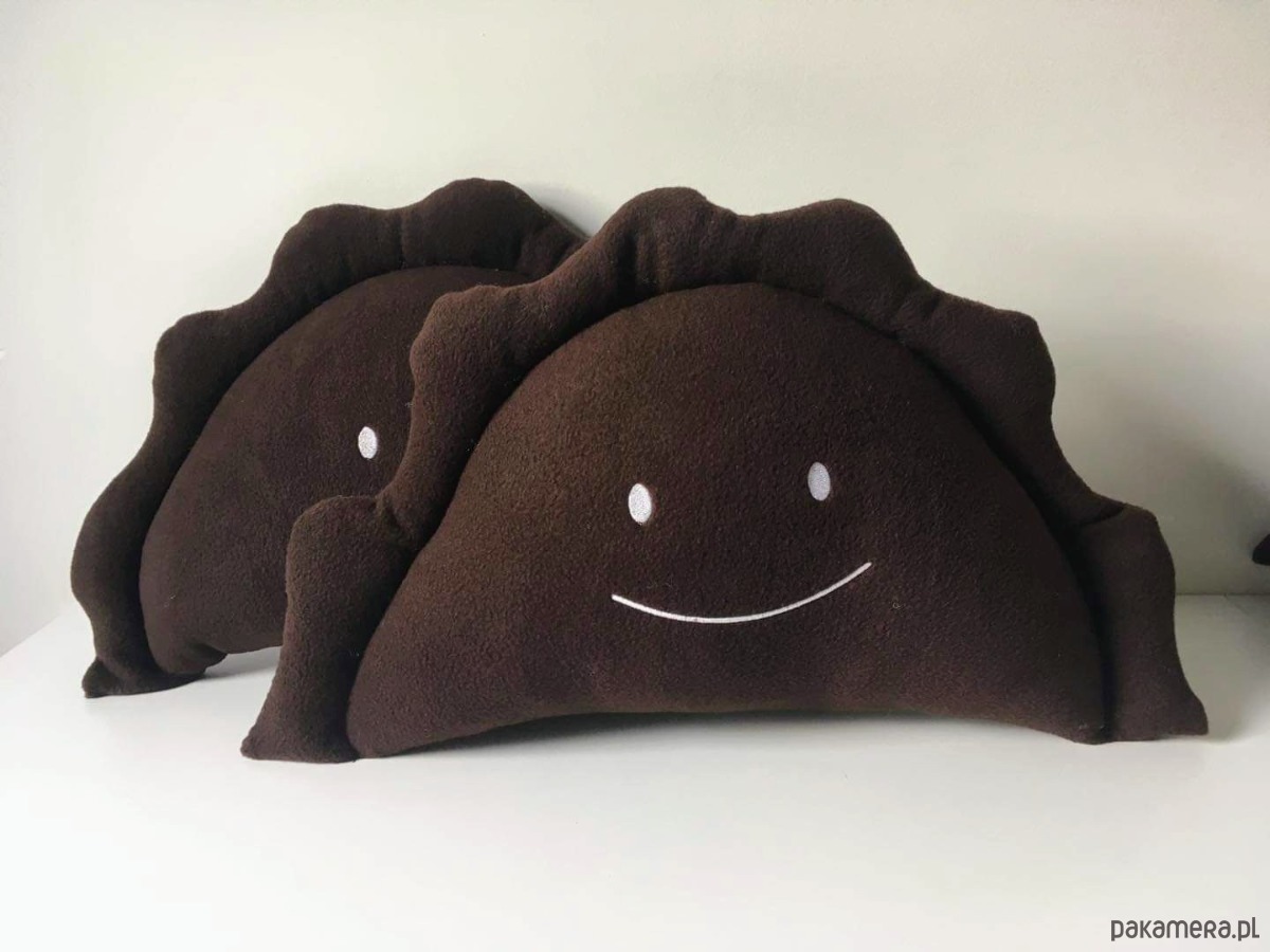 Poduszka pierożek o wymiarach 50 cm x 30 cm. Pierożek Wykonany z grubego, mięsistego polaru wypełniony antyalergiczną kulką silikonową. Uśmiech wykonany jest haftem.