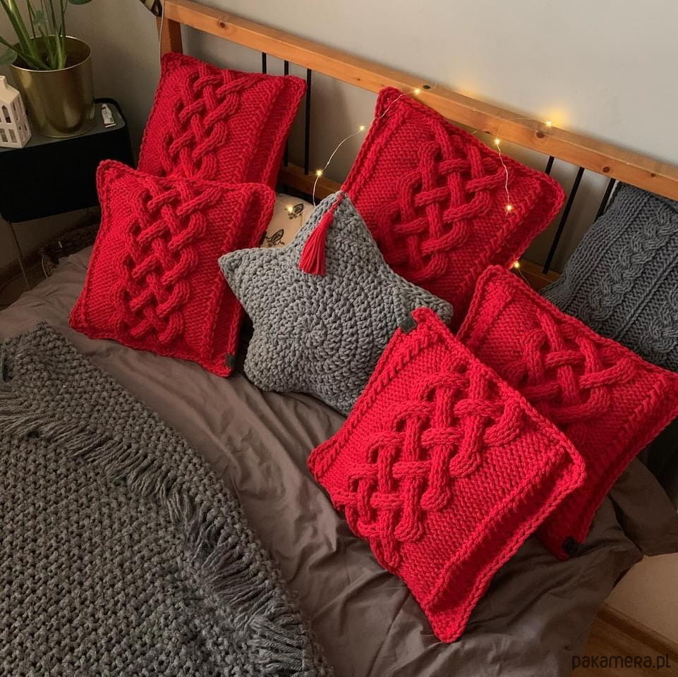 Poduszki ręcznie dziergane w oryginalny wzór będą wspaniałym dodatkiem do każdego wnętrza.