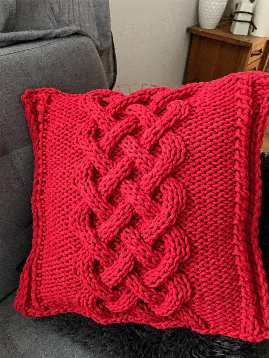 Plecionka warkoczowa to bardzo pracochłonny wzór . Poduszka jest bardzo dekoracyjna . Wykonałam poduszki tak aby była możliwość zdjęcia poszewki i wyprania .