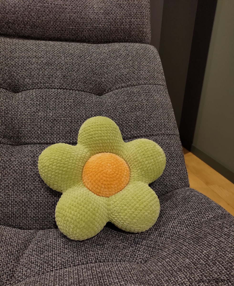 - Miękka poduszka kwiatek wykonana na szydełku z przyjemnej pluszowej włóczki i ma delikatną powierzchnię w dotyku.