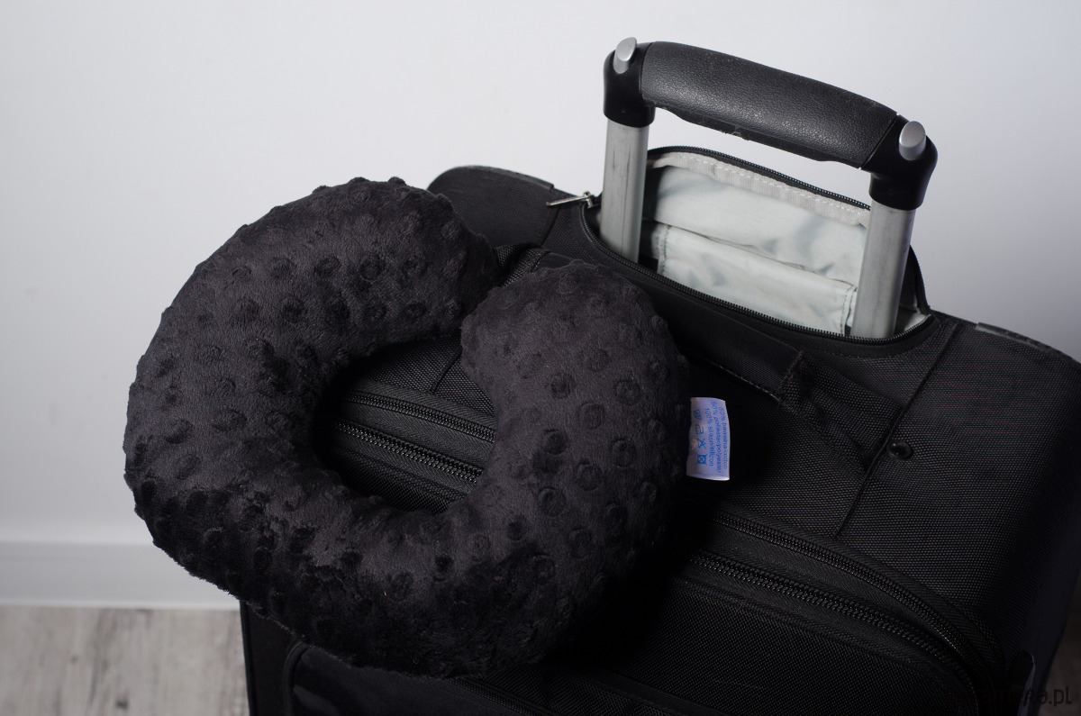 Zapięcie na nap pozwala przewozić poduszkę wygodnie nie zajmując dodatkowego miejsca w bagażu - dopinając do walizki, paska od spodni.