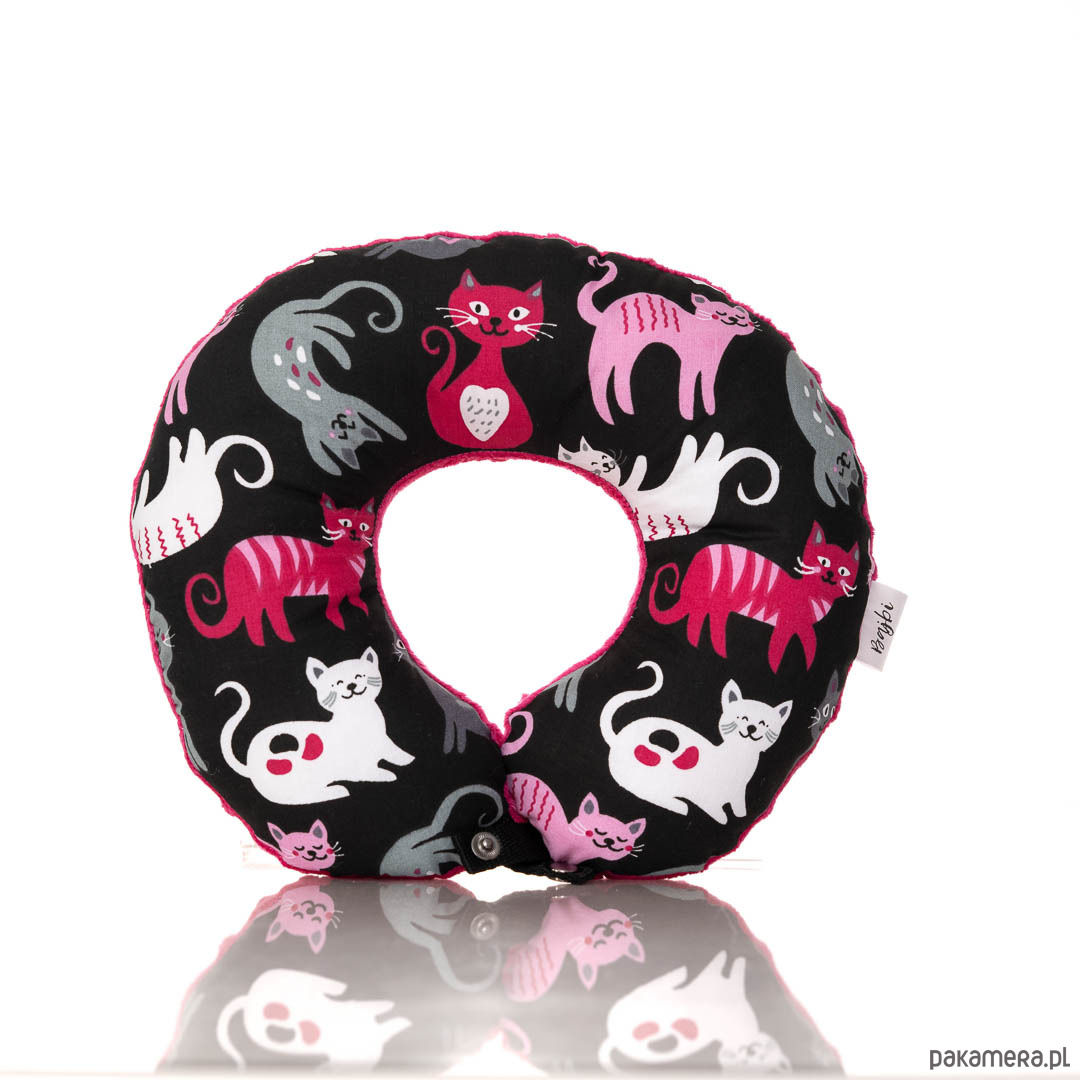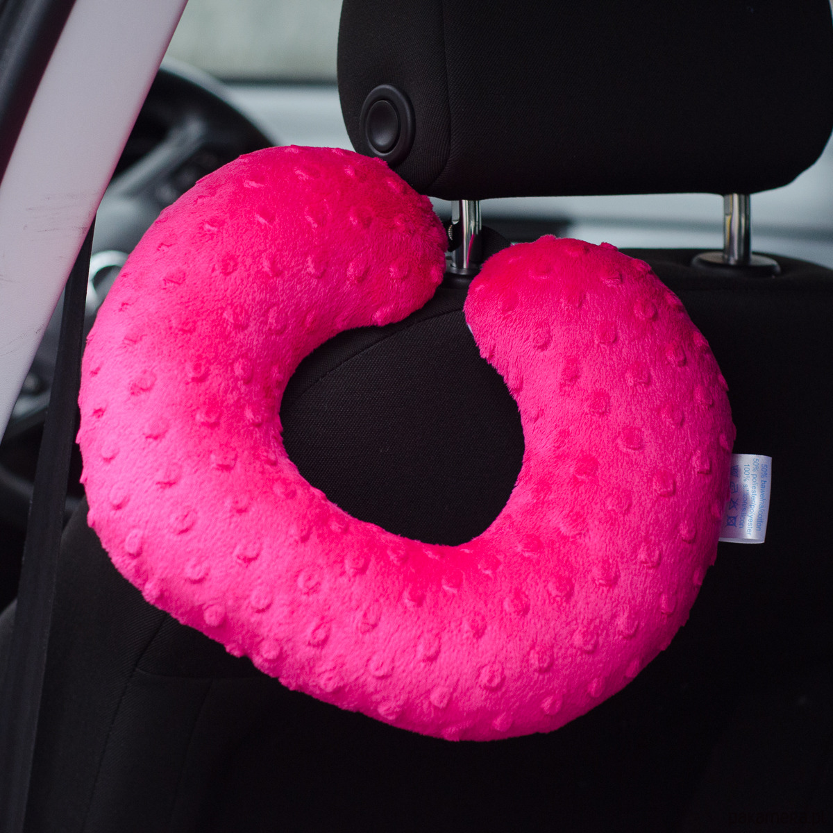 Dzięki zapięciu na nap poduszka nie wędruje po samochodzie tylko może zostać wpięta w zagłówek lub przypięta do pasa.
