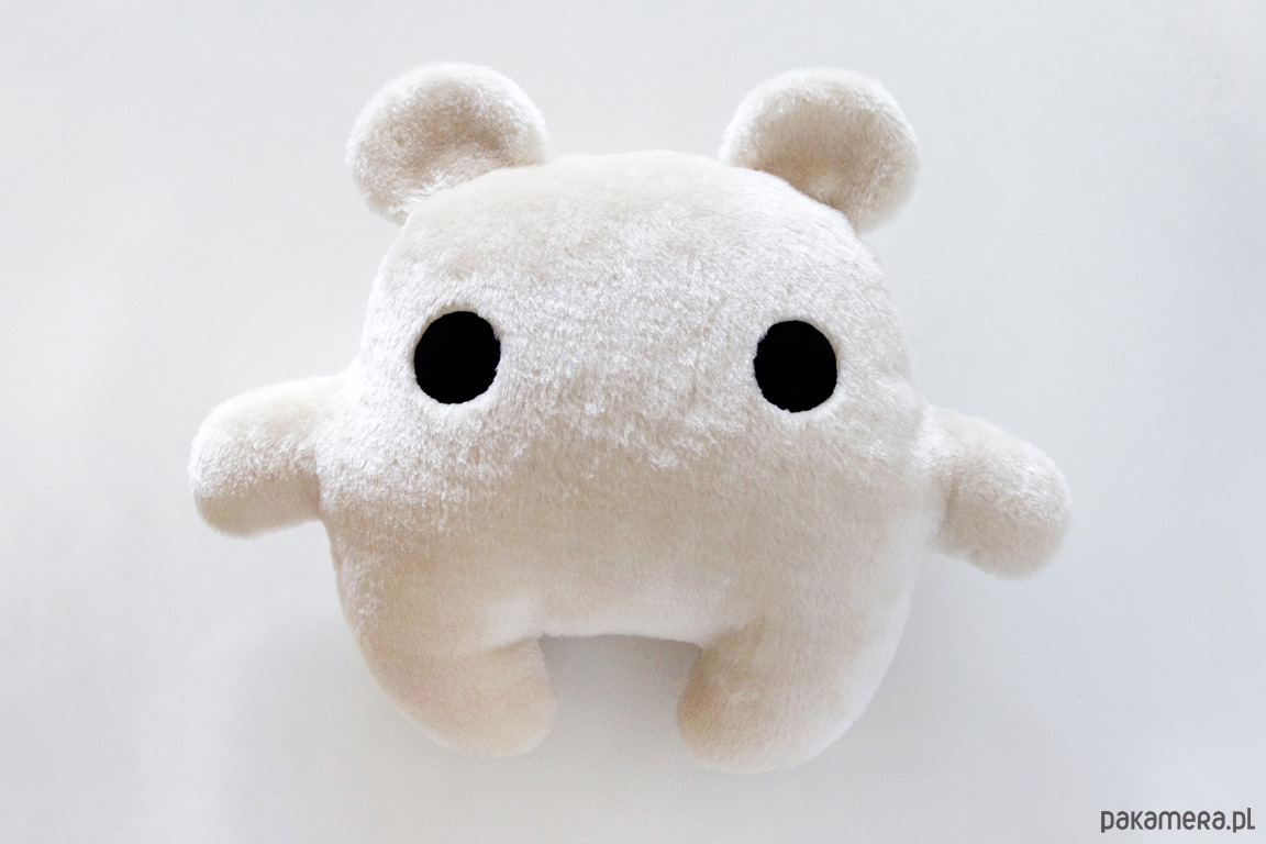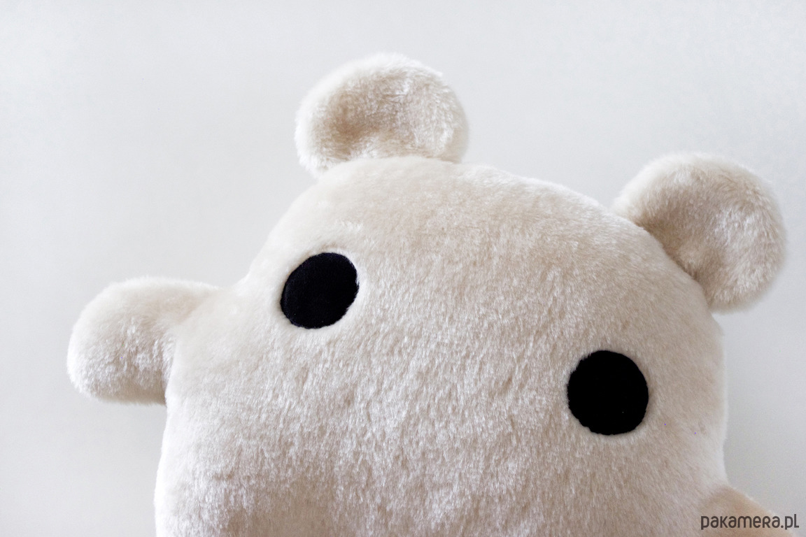 Ta poduszko-maskotka jest wykonana ręcznie z mięciutkiego, przyjemnego w dotyku sztucznego futerka w kolorze kremowym. Wypełniona jest puchatą kulką silikonową.