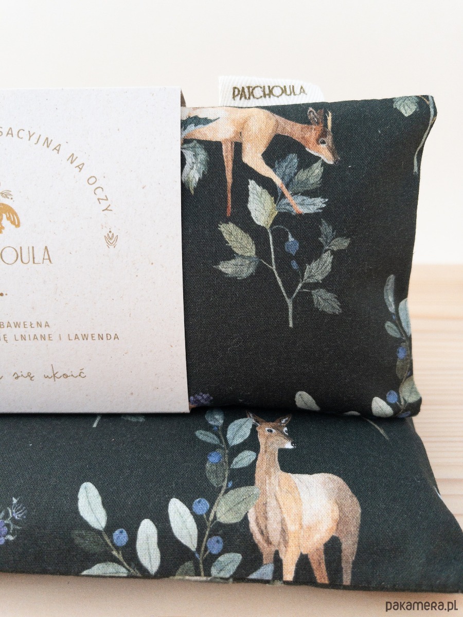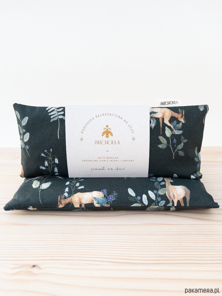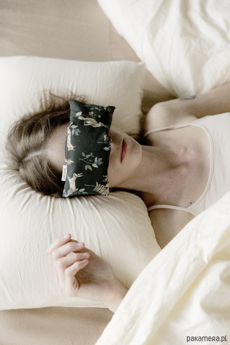 Bawełniana poduszka na oczy w zwierzący, projektowany ręcznie wzór.