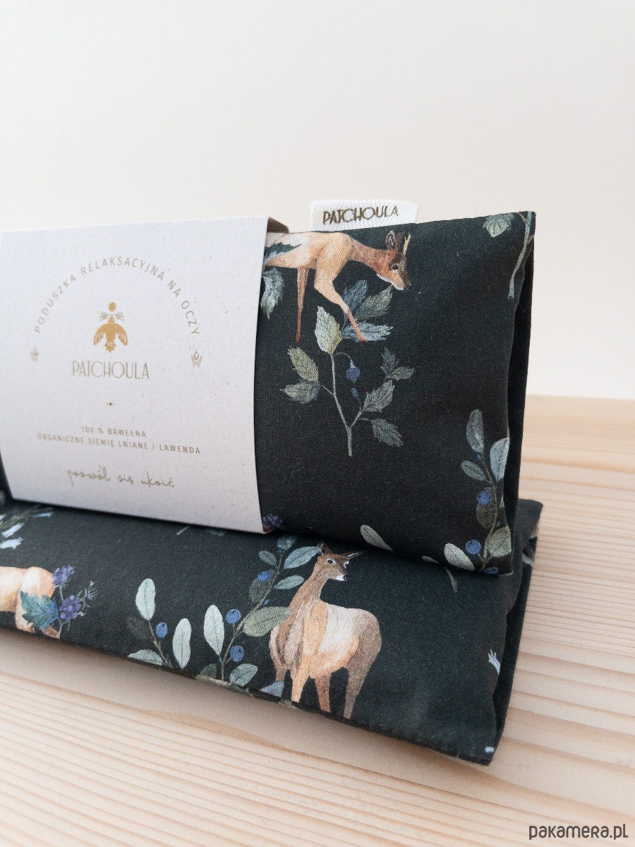 Bawełniana poduszka na oczy w zwierzący, projektowany ręcznie wzór.