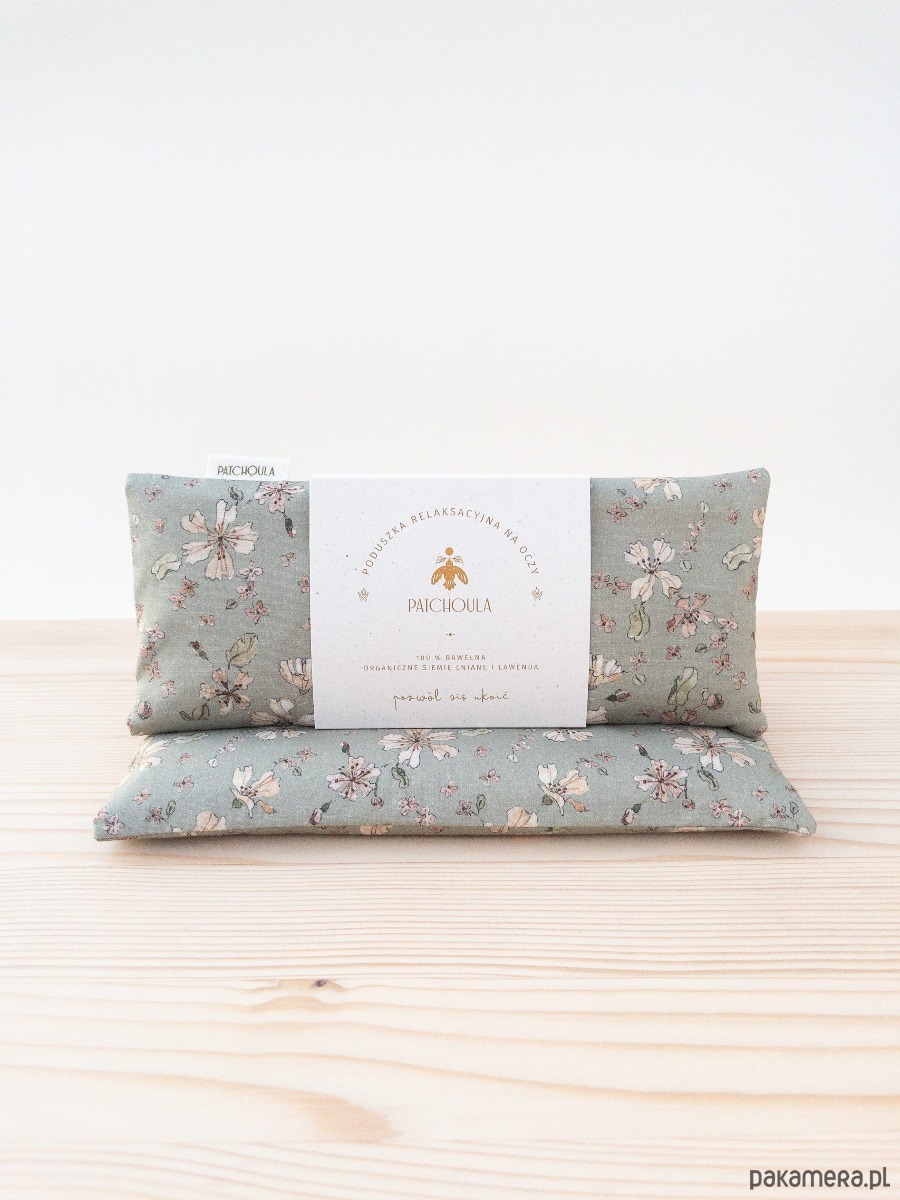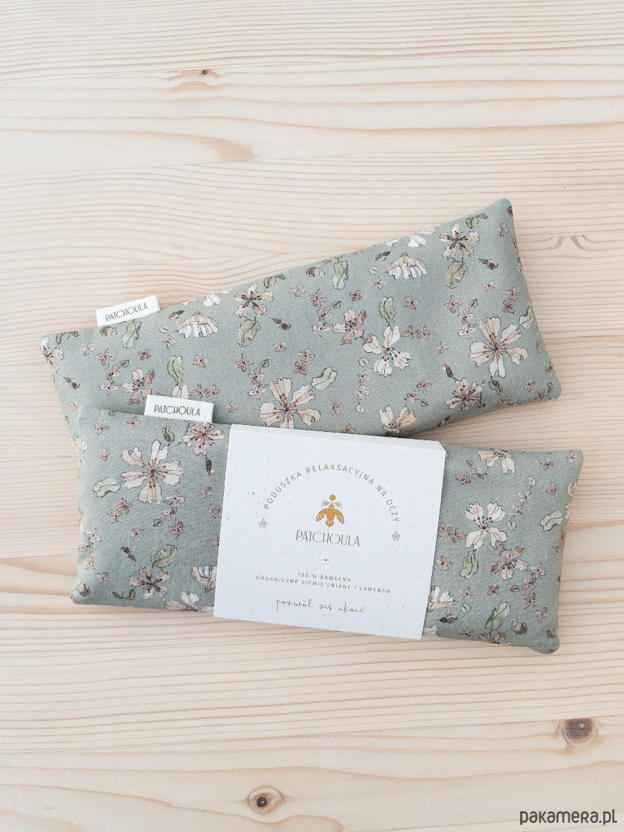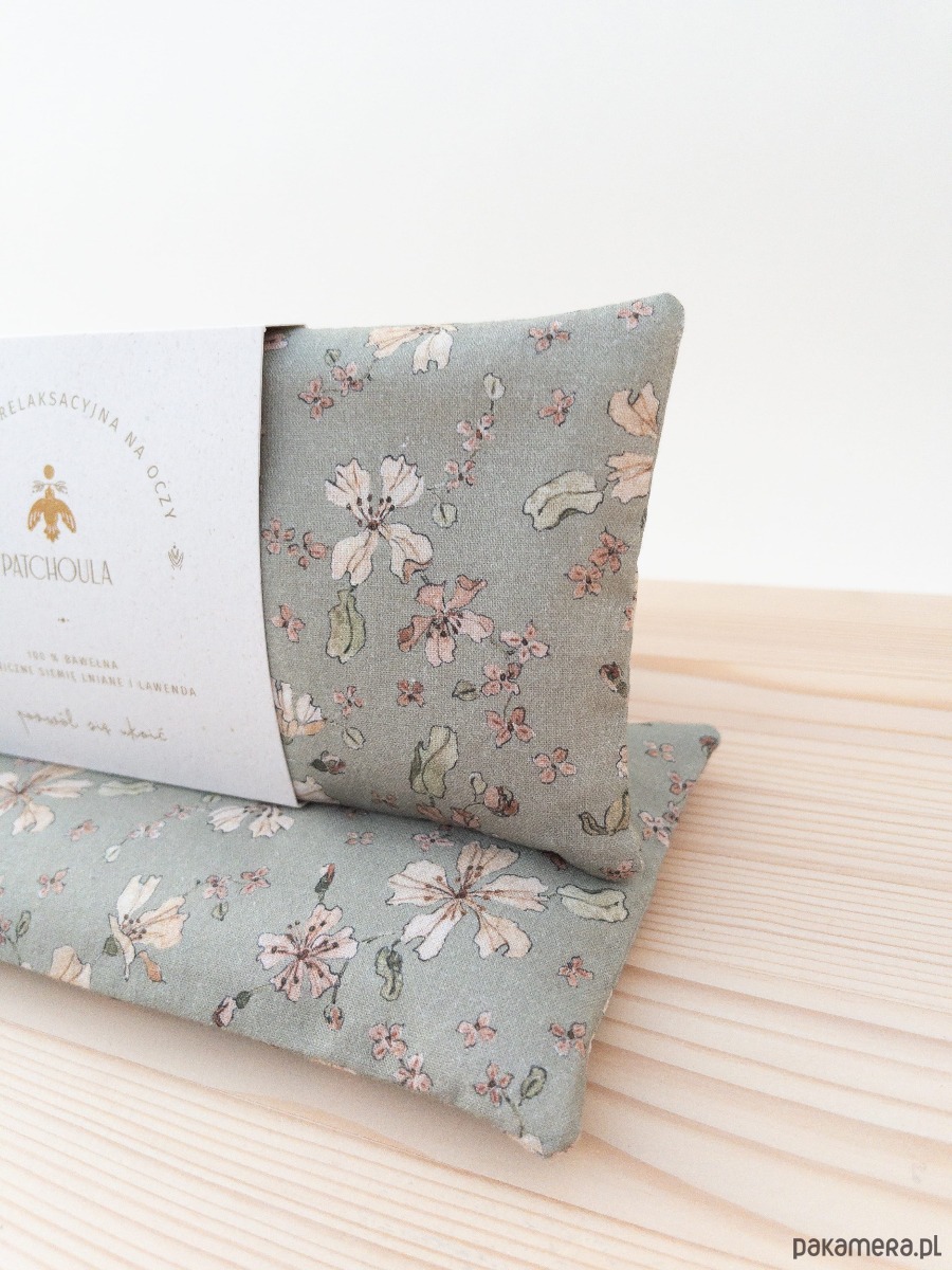 Bawełniana poduszka na oczy w kwiatowy, projektowany ręcznie wzór.