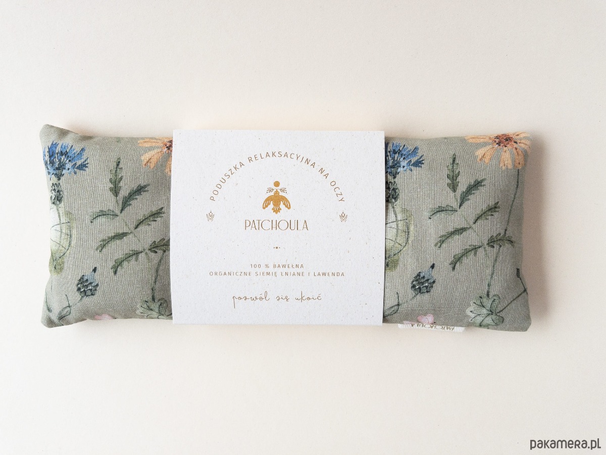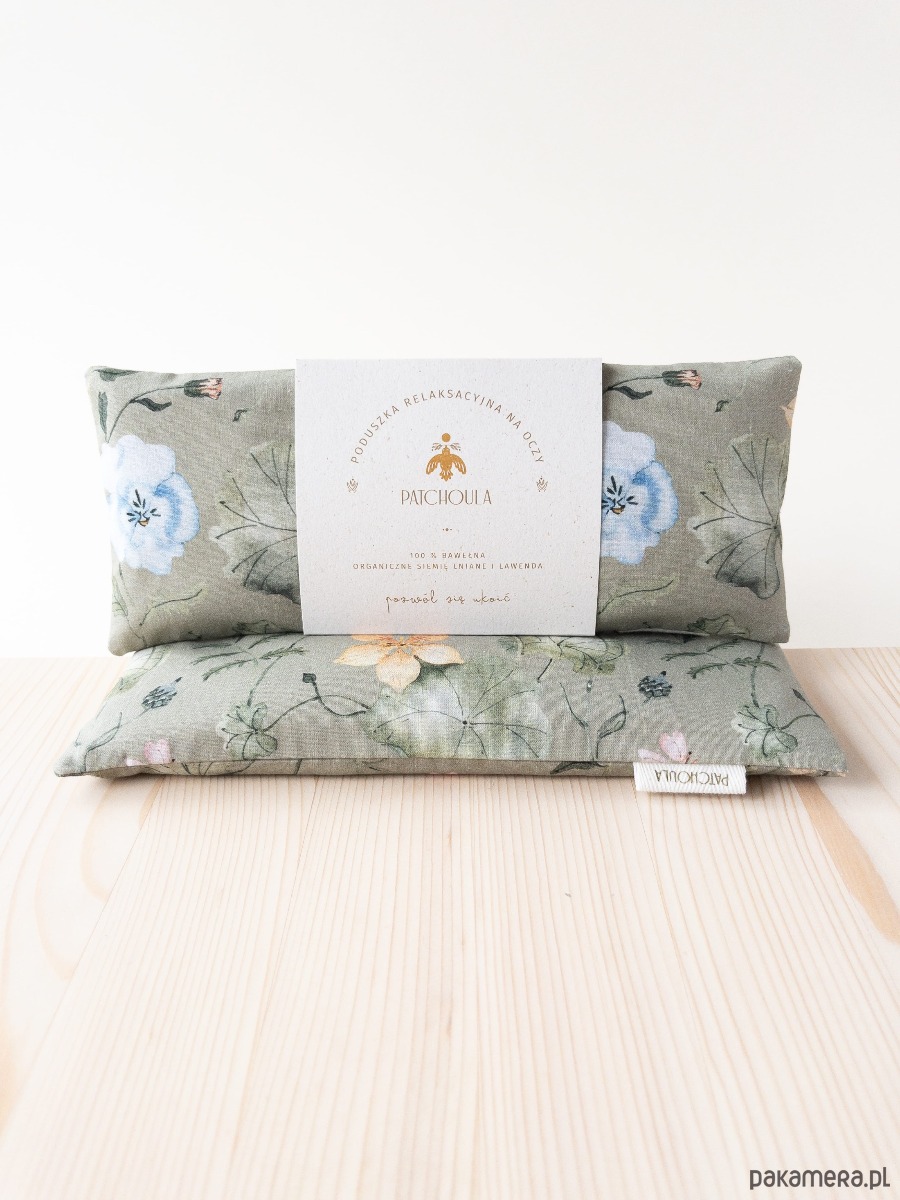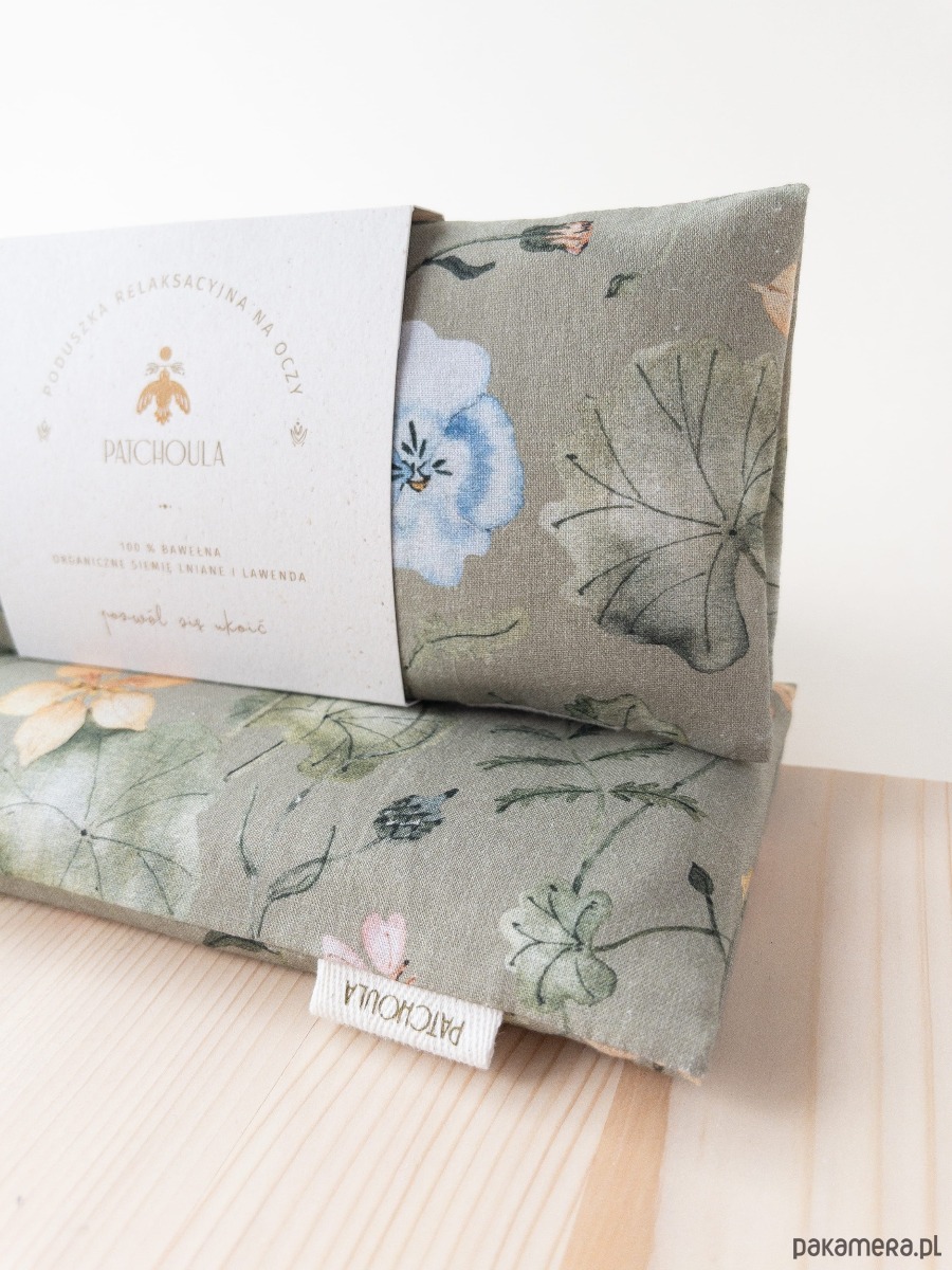 Bawełniana poduszka na oczy w kwiatowy, projektowany ręcznie wzór.