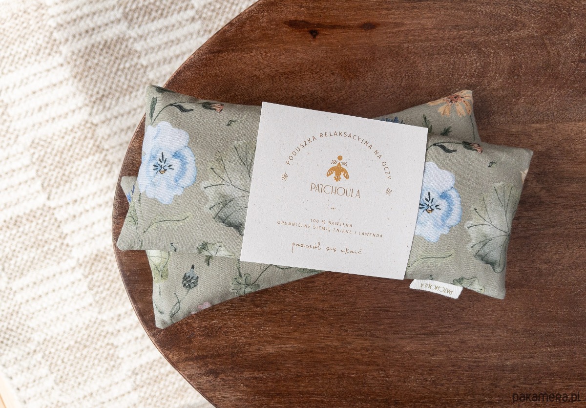 Poduszka relaksacyjna na oczy z ekologicznymi nasionami lnu i kwiatami lawendy.