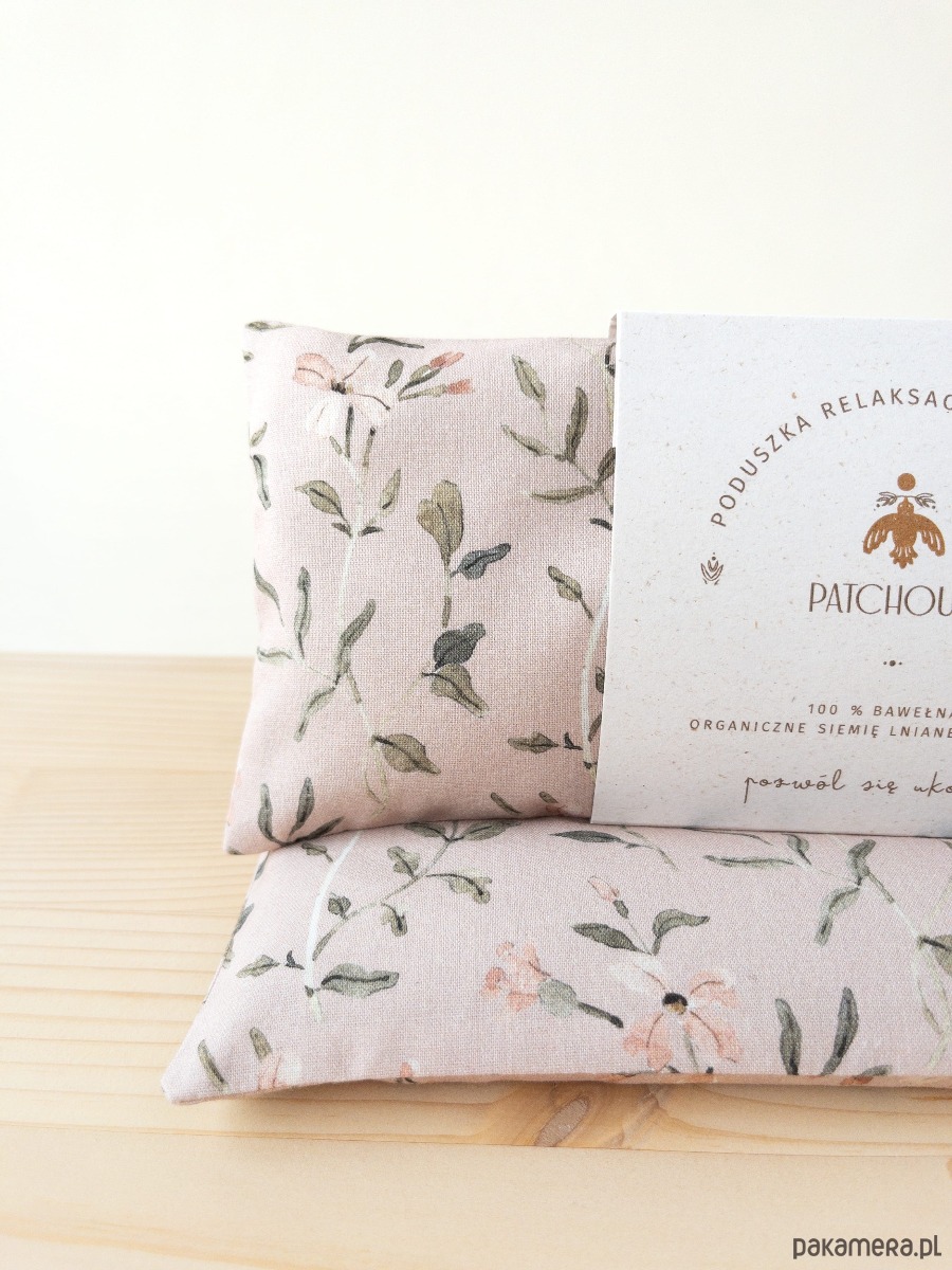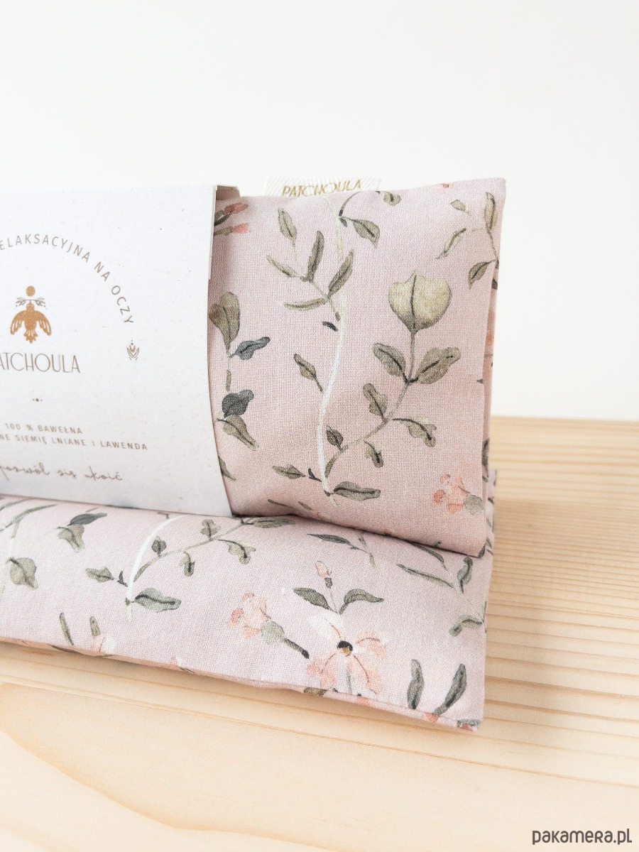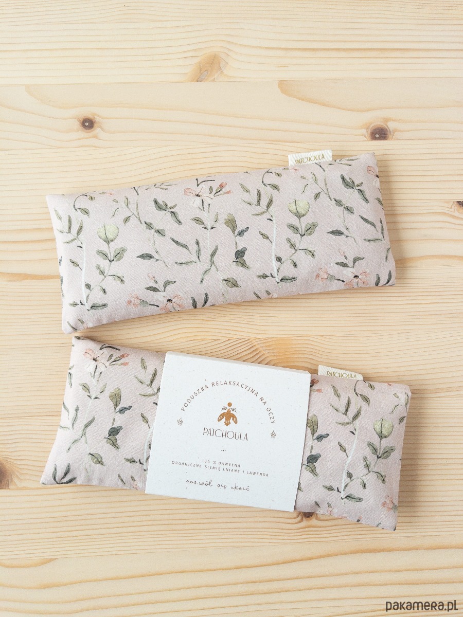 Bawełniana poduszka na oczy w kwiatowy, projektowany ręcznie wzór.