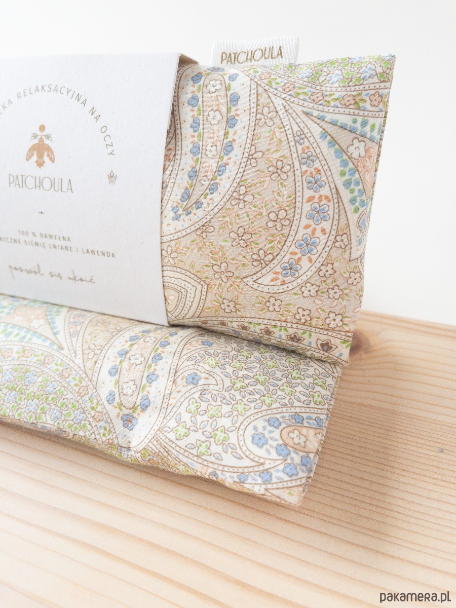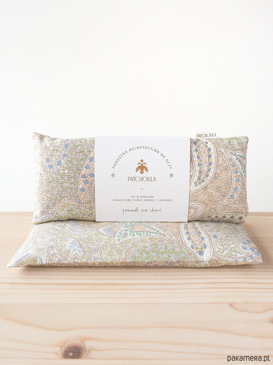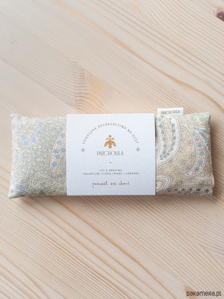 Poduszka relaksacyjna na oczy z ekologicznymi nasionami lnu i kwiatami lawendy.
