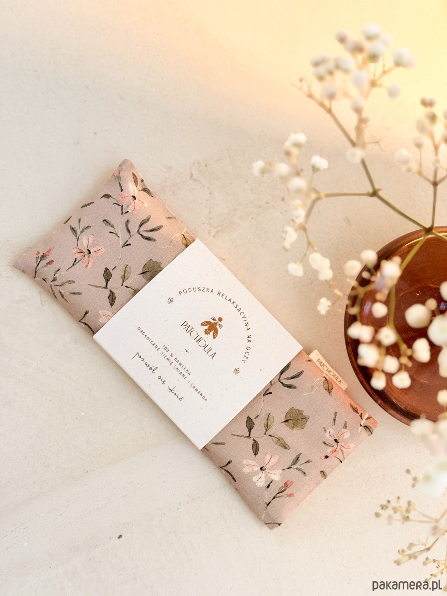 Poduszka relaksacyjna na oczy z ekologicznymi nasionami lnu i kwiatami lawendy.
