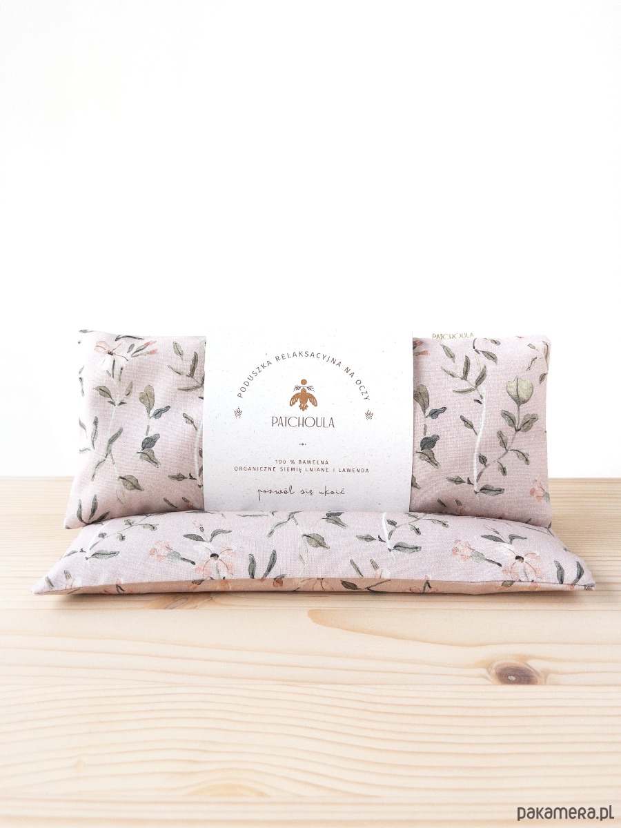 Bawełniana poduszka na oczy w kwiatowy, projektowany ręcznie wzór.
