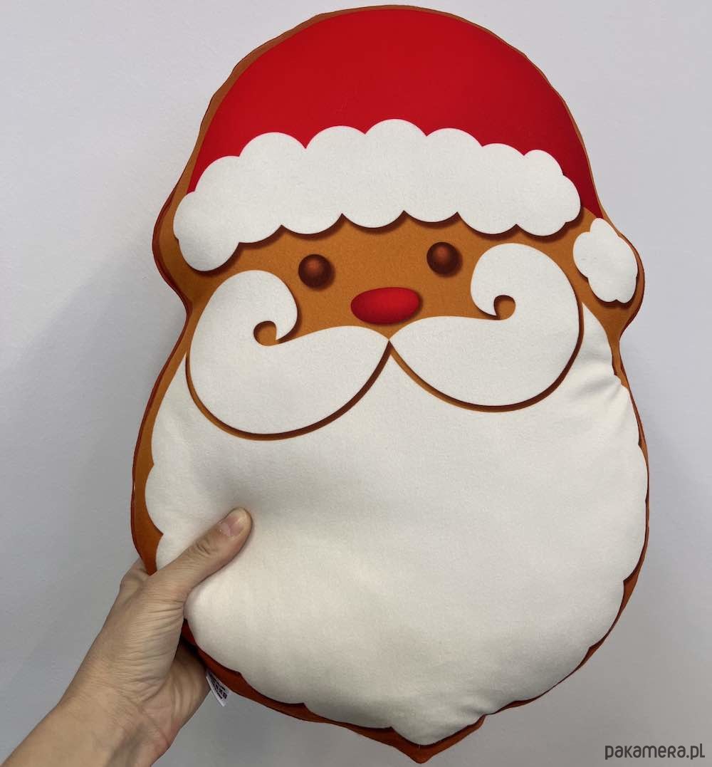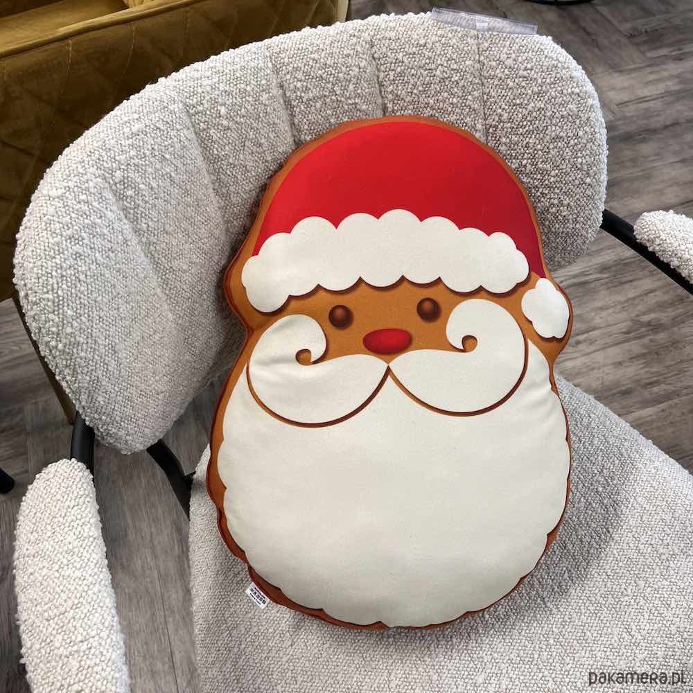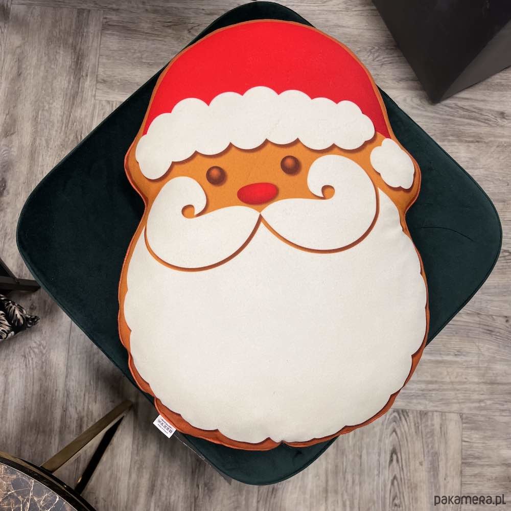 Urocza poduszka w kształcie Piernika Mikołaj, dwustronna mięciutka wykonana z przyjemnego materiału.