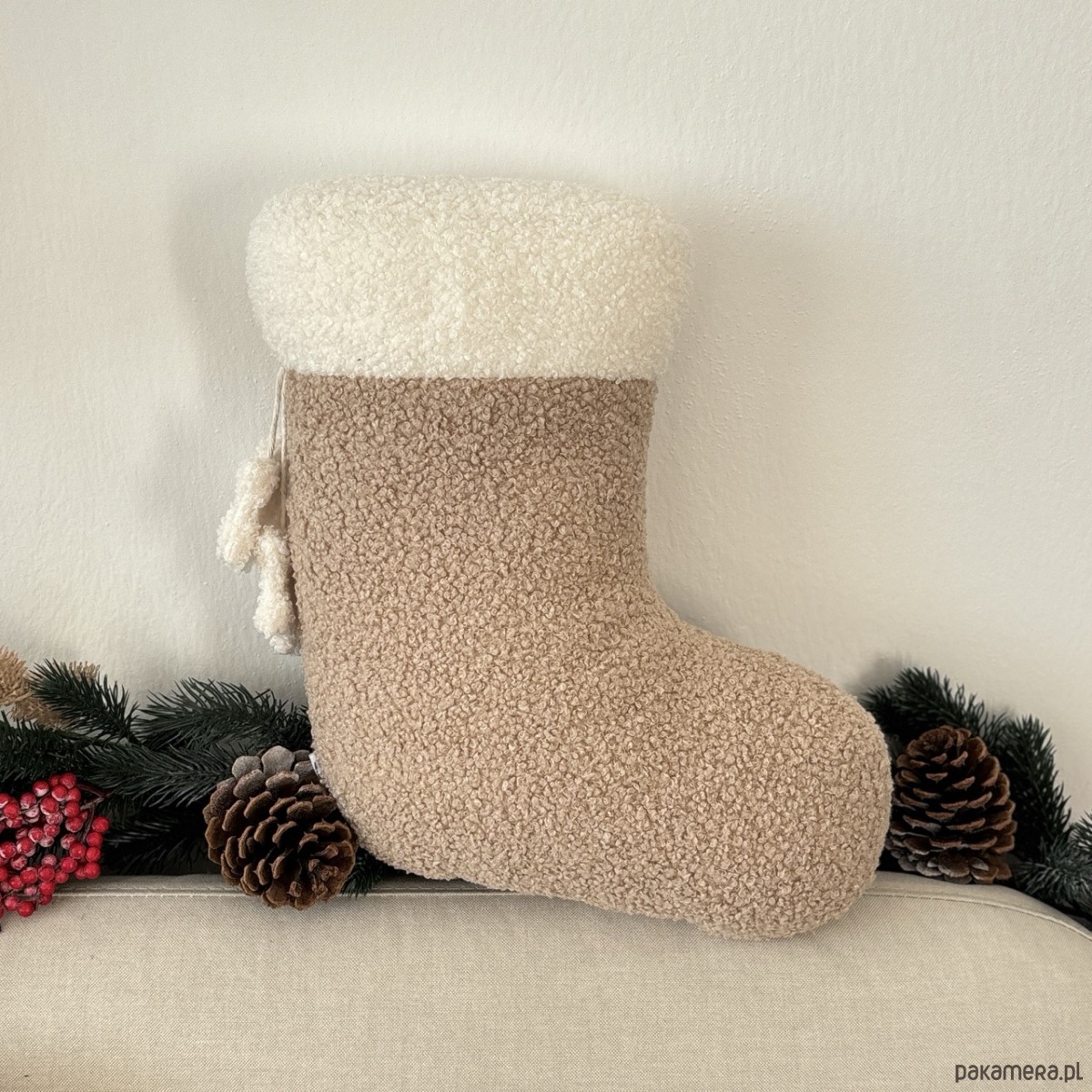 Poduszka Świąteczna Skarpeta Beżowa Boucle