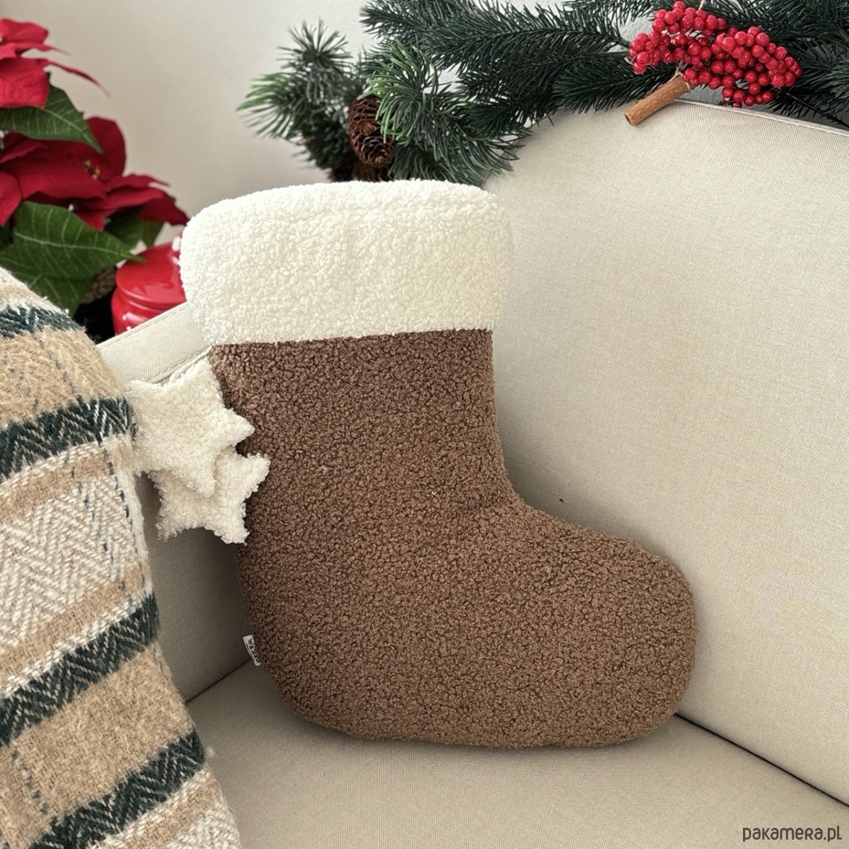 Poduszka Świąteczna Skarpeta Brązowa Boucle