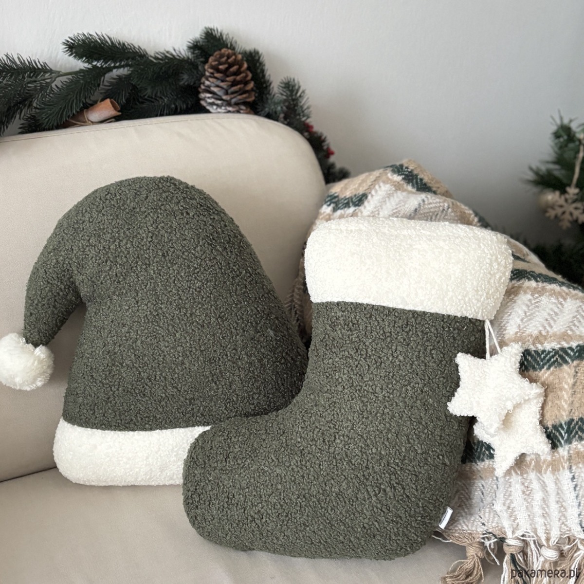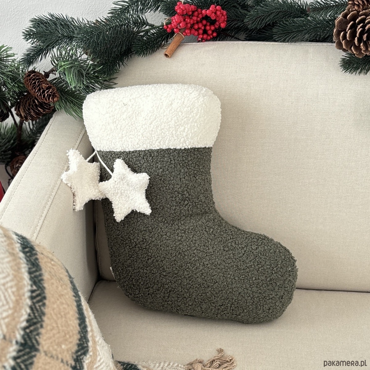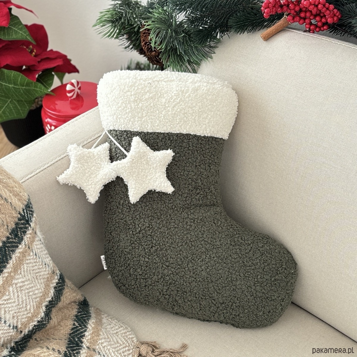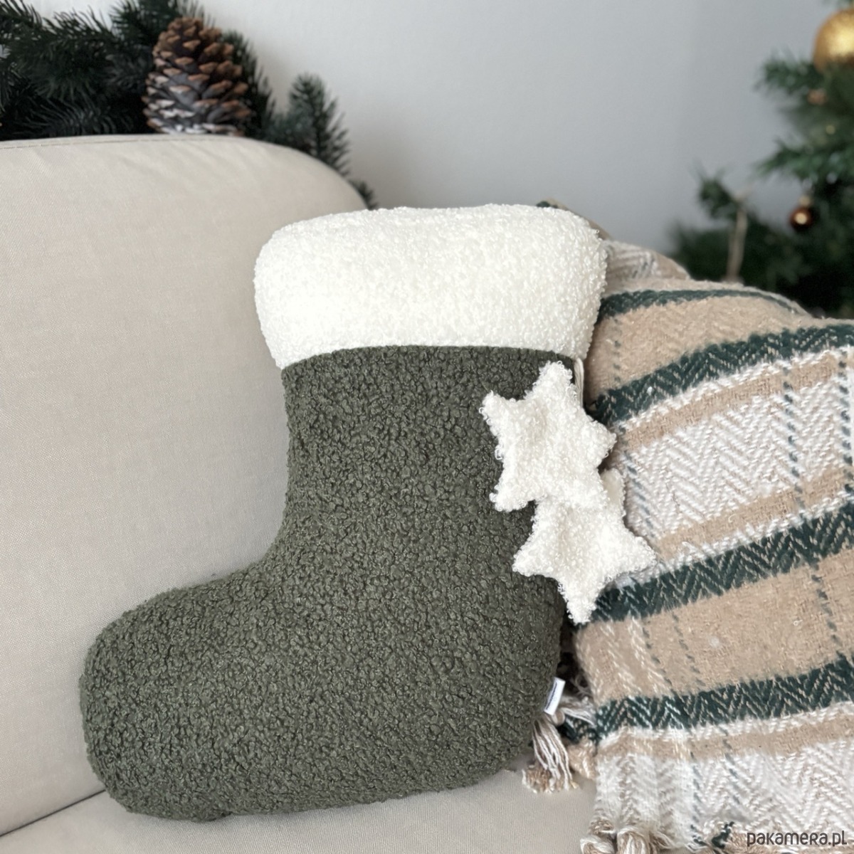 Poduszka Świąteczna Skarpeta Zielona Boucle