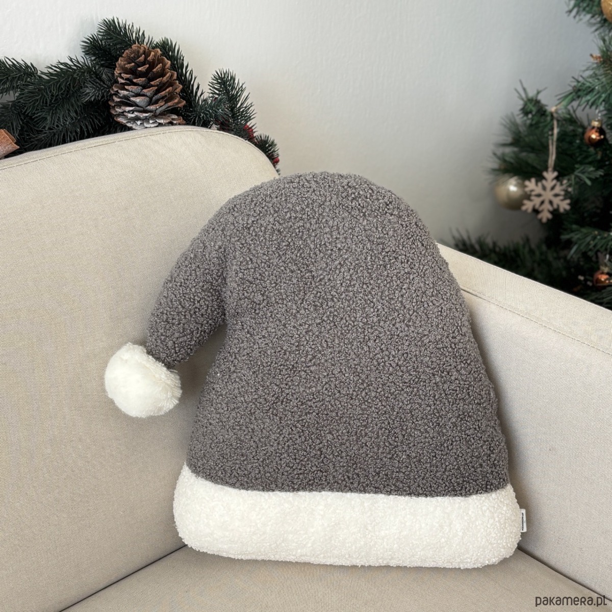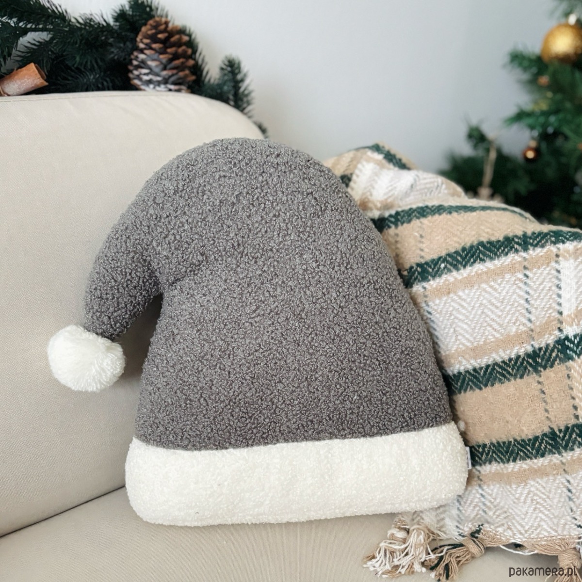 Poduszka W Kształcie Czapki Mikołaja Ciemna Szara Boucle