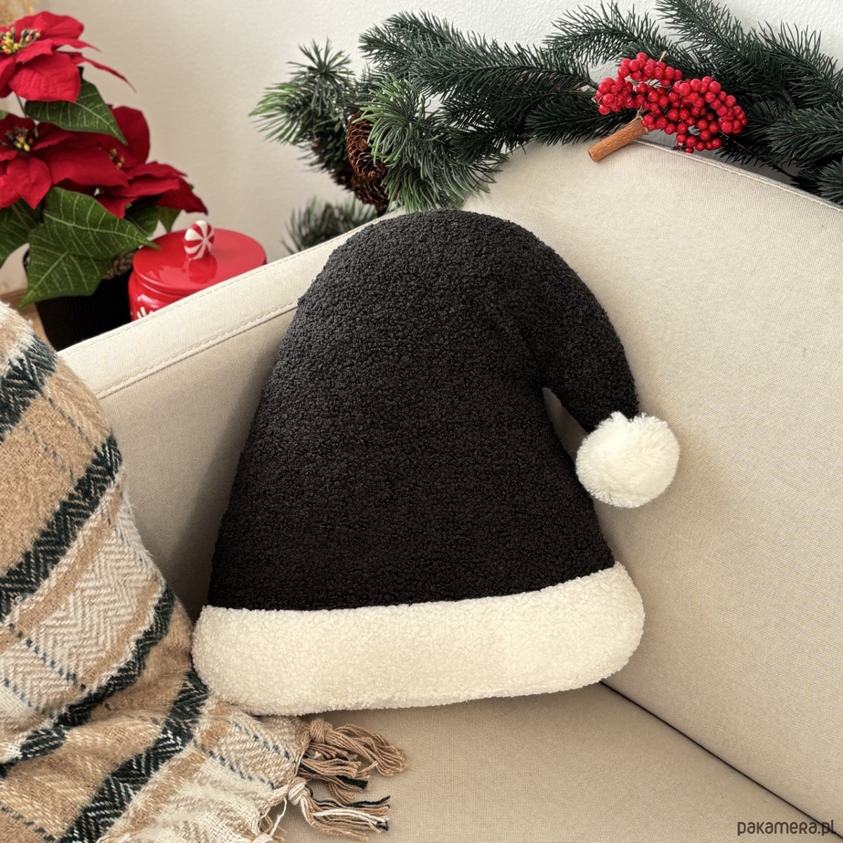 Poduszka W Kształcie Czapki Mikołaja Czarna Boucle