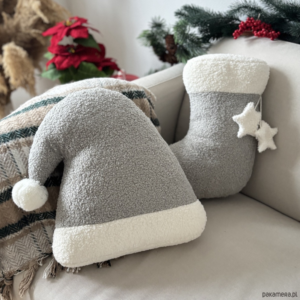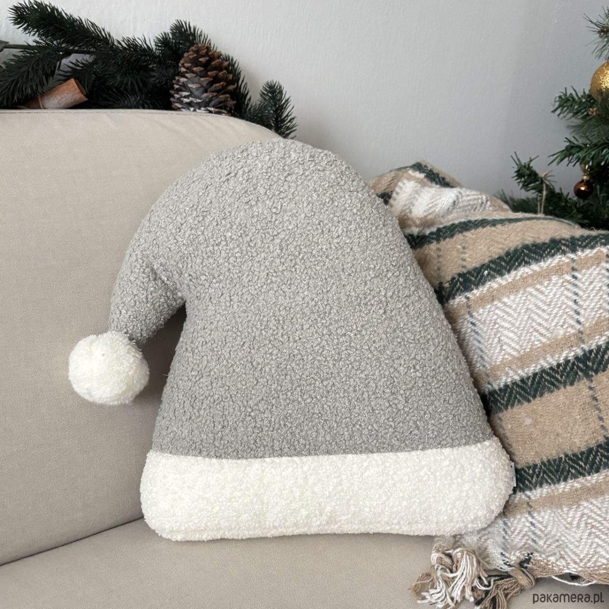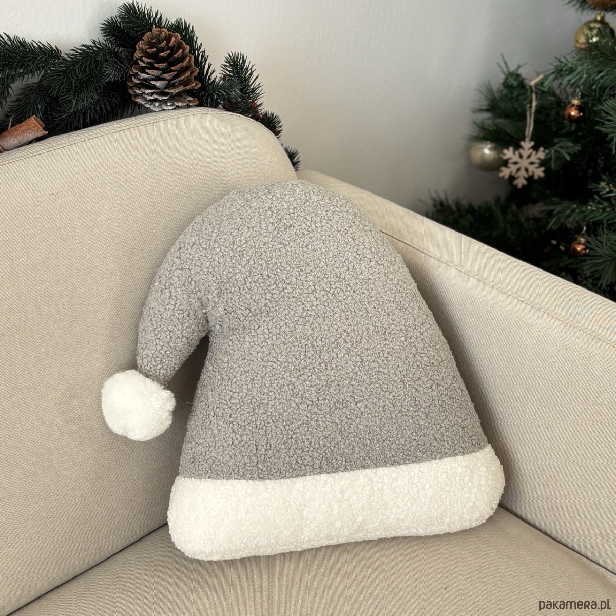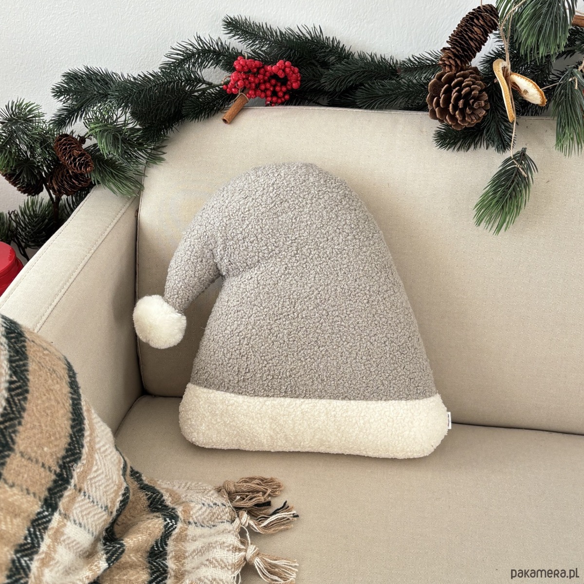 Poduszka W Kształcie Czapki Mikołaja Szara Boucle