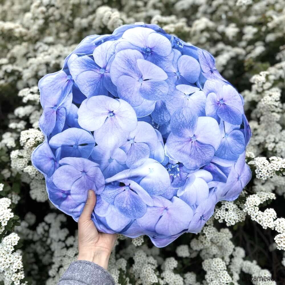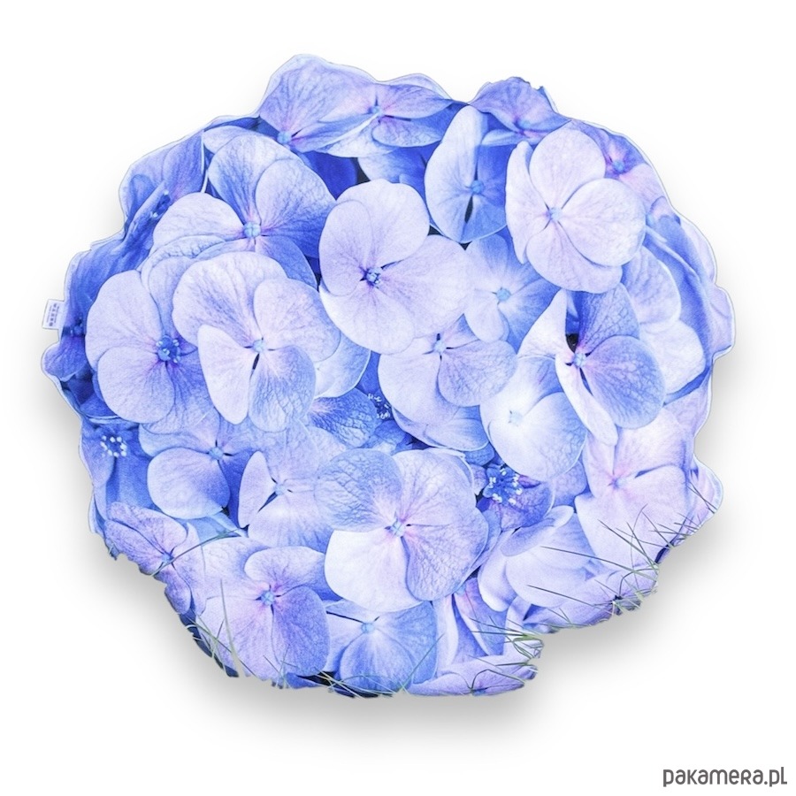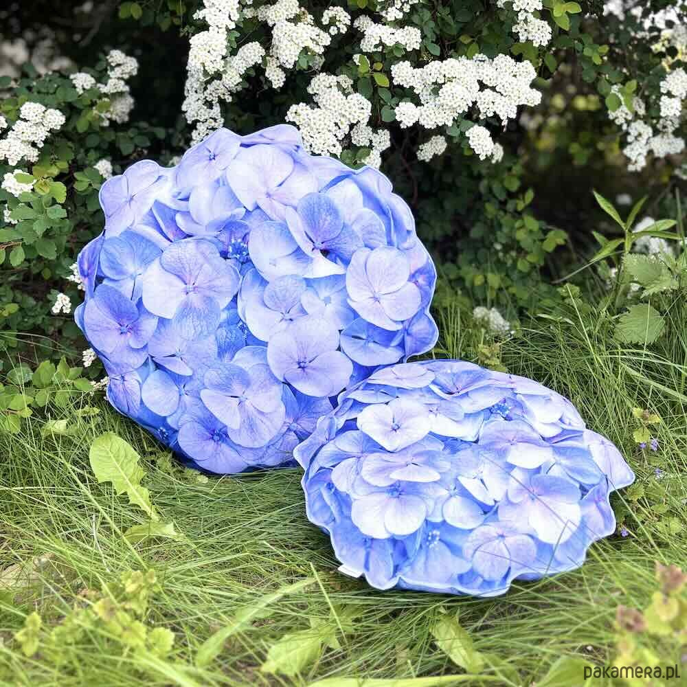 Poduszka wodoodporna duża wersja kwiat Hortensja blue Hydrangea macrophylla w pięknym kolorze wpadającym w fioletowo-niebieski odcień z odrobiną lekkiego różu, to zachwycająca dekoracja obok której nie można przejść obojętnie.