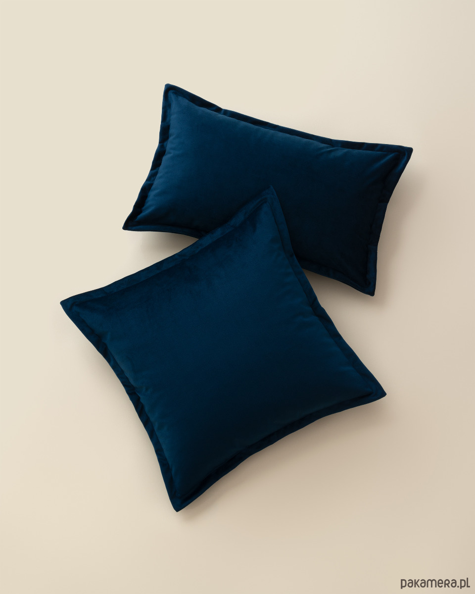 Poszewka dekoracyjna w kolorze granatowym z ozdobnym wykończeniem po bokach, to połączenie klasyki z nutą elegancji. Poszewki zostały uszyte z niezwykle gładkiej i przyjemnej w dotyku welwetowej tkaniny. Oryginalne wykończenie nadaje poszewkom efektowny kształt.