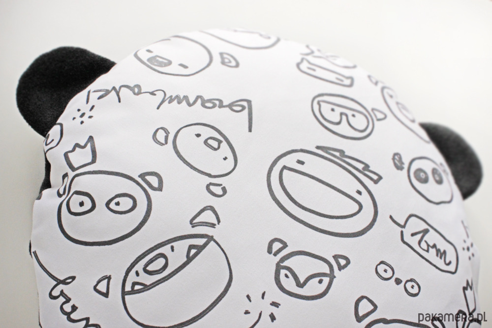 Tył jest z polaru w kolorze czarnym. Poducha zapinana jest na zamek błyskawiczny. Bardzo łatwo wyjąć poduchę wewnętrzna w razie potrzeby wyprania poszewki.