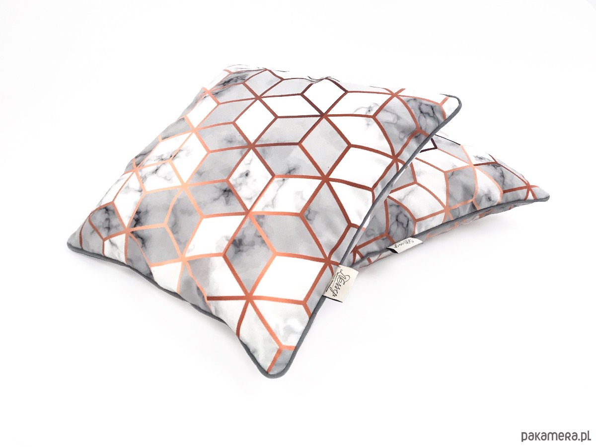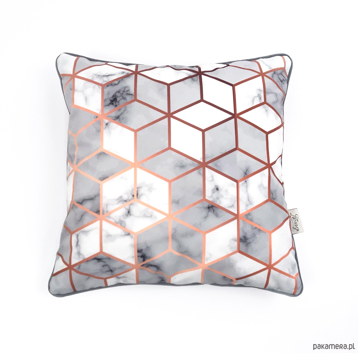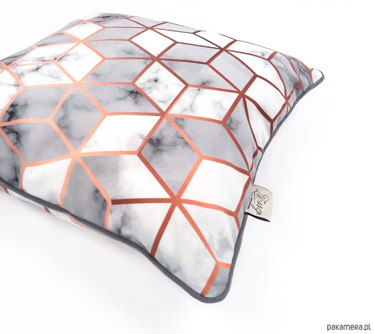 Nessy Patchwork przedstawia wyjątkową welurową poduszkę dekoracyjną. Wzór marmuru w połączeniu z cieniowanym sześcianami w odcieniach brązu dają efekt 3D. Poduszka pięknie ozdobi każda kanapę.