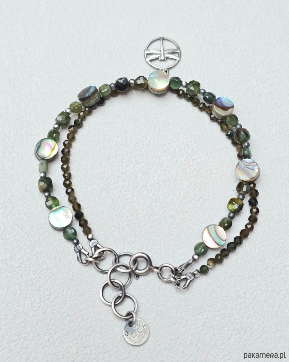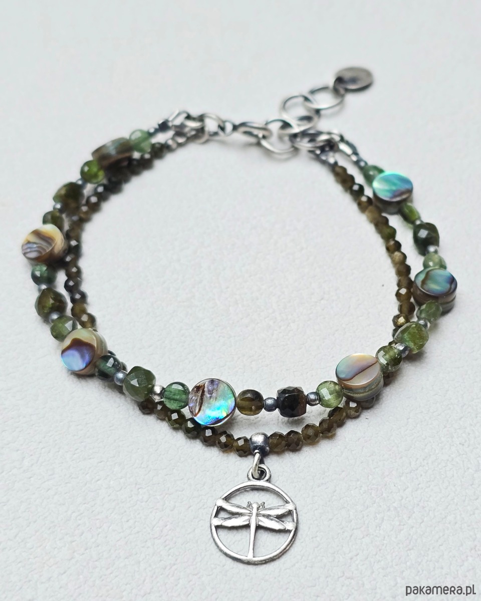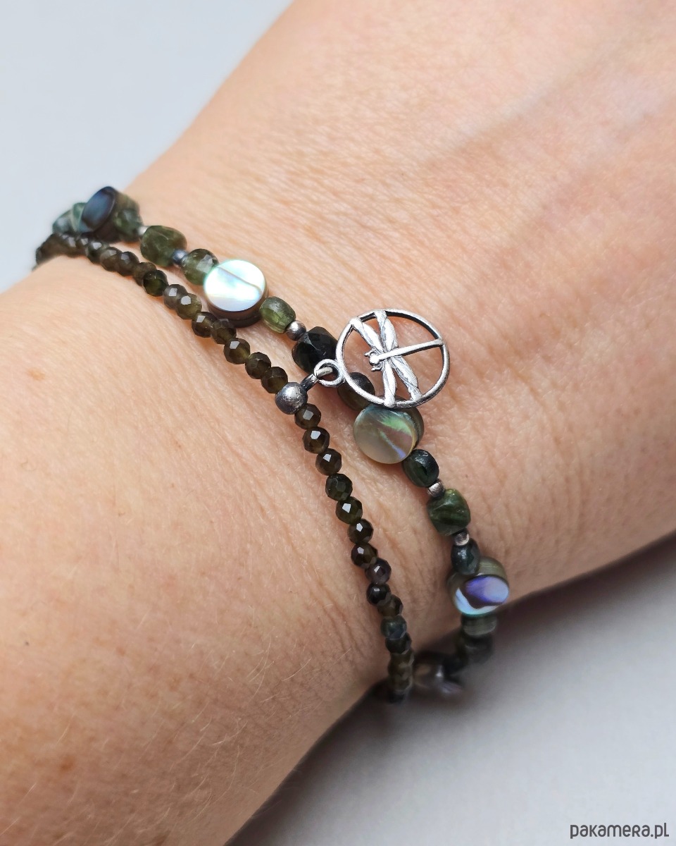 Delikatna, podwójna bransoletka z kamieni naturalnych z motywem ważki.