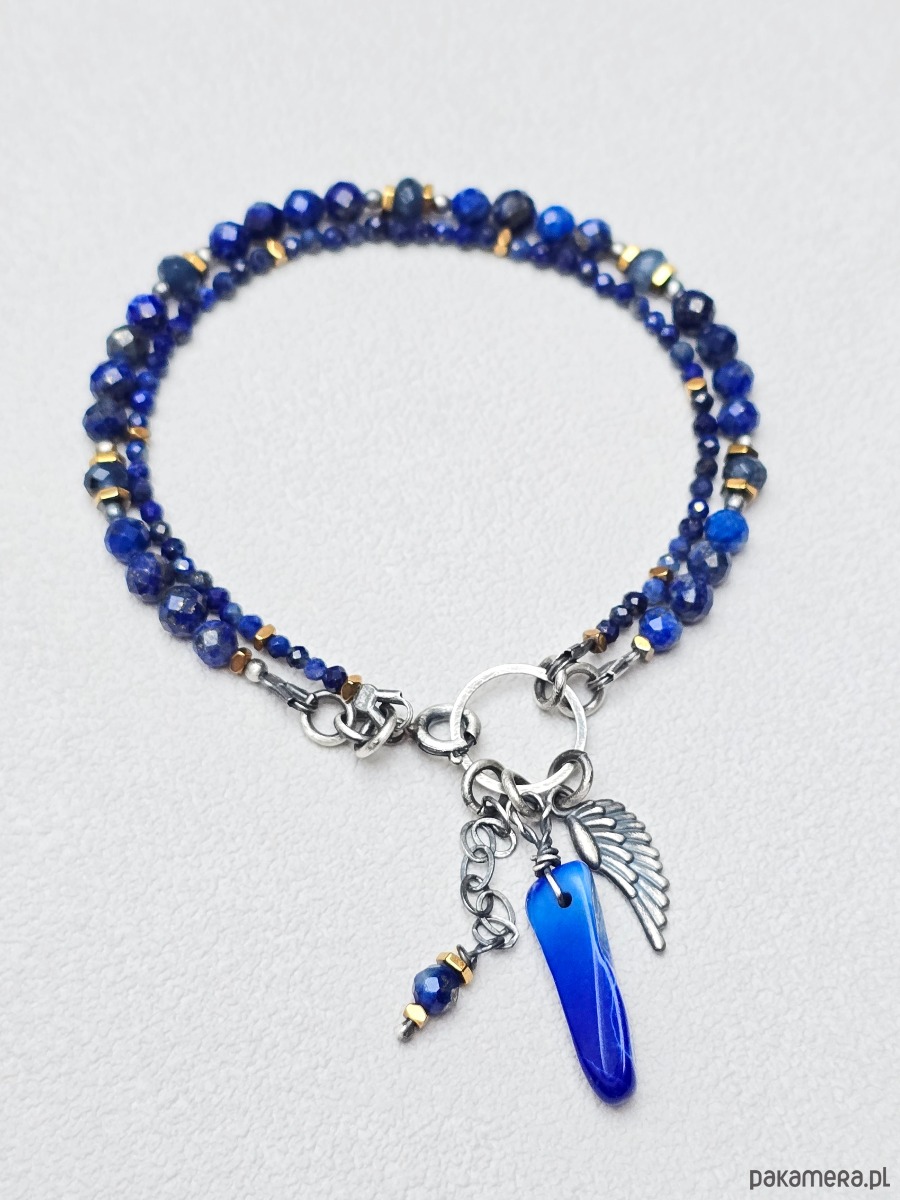 Wykonana z lapisu lazuli, jadeitu i złoconego hematytu.