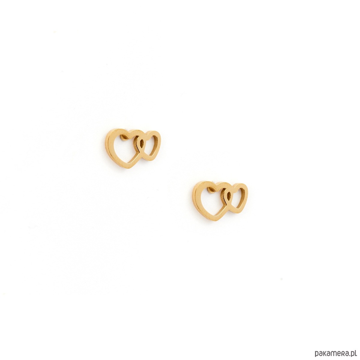 Podwójne serduszka - kolczyki sztyfty ze stali szlachetnej pozłacanej