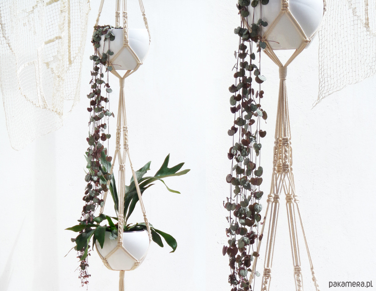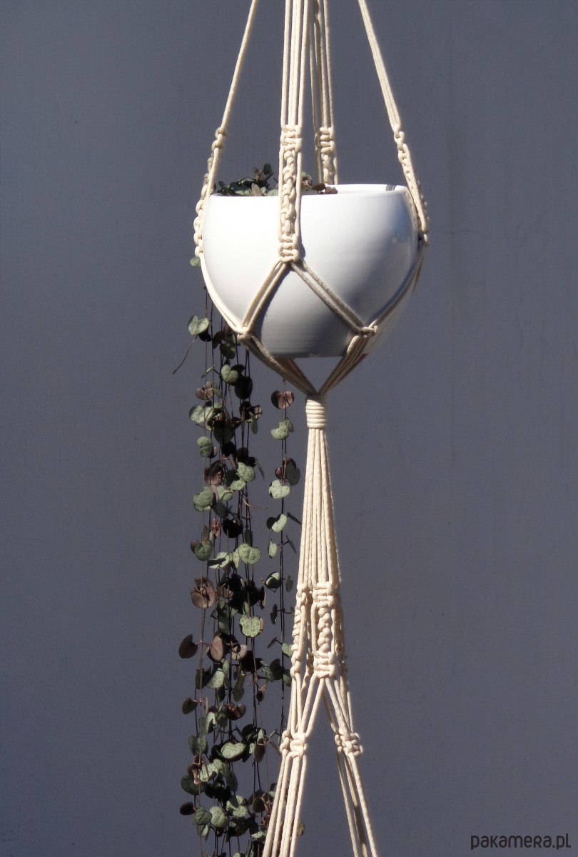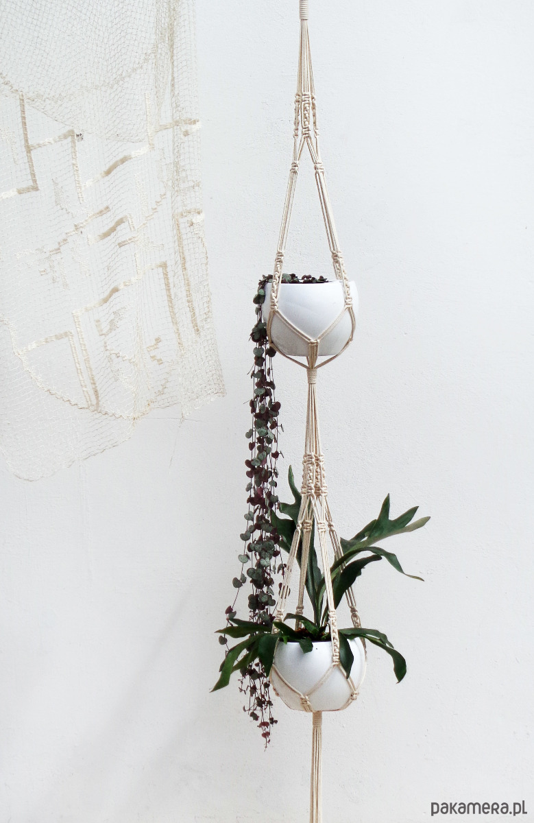 Kwietnik na dwie doniczki wyplatany ręcznie techniką makramy. Lekka, smukła konstrukcja. Polecamy serdecznie!