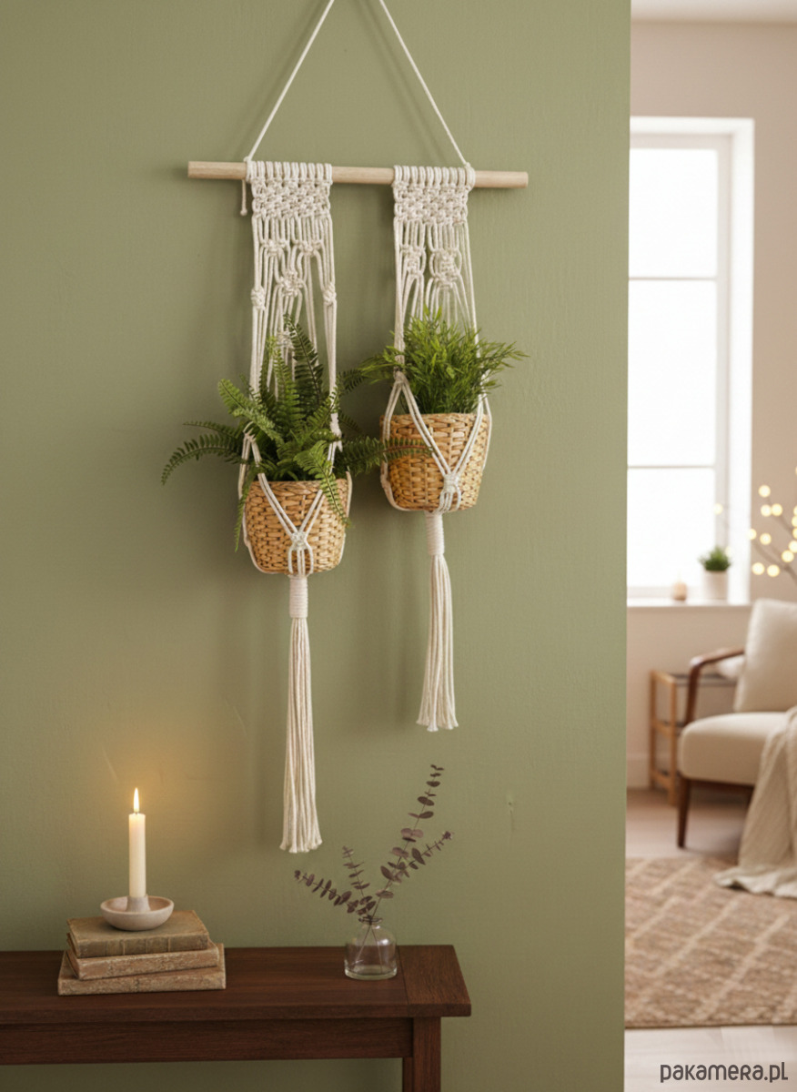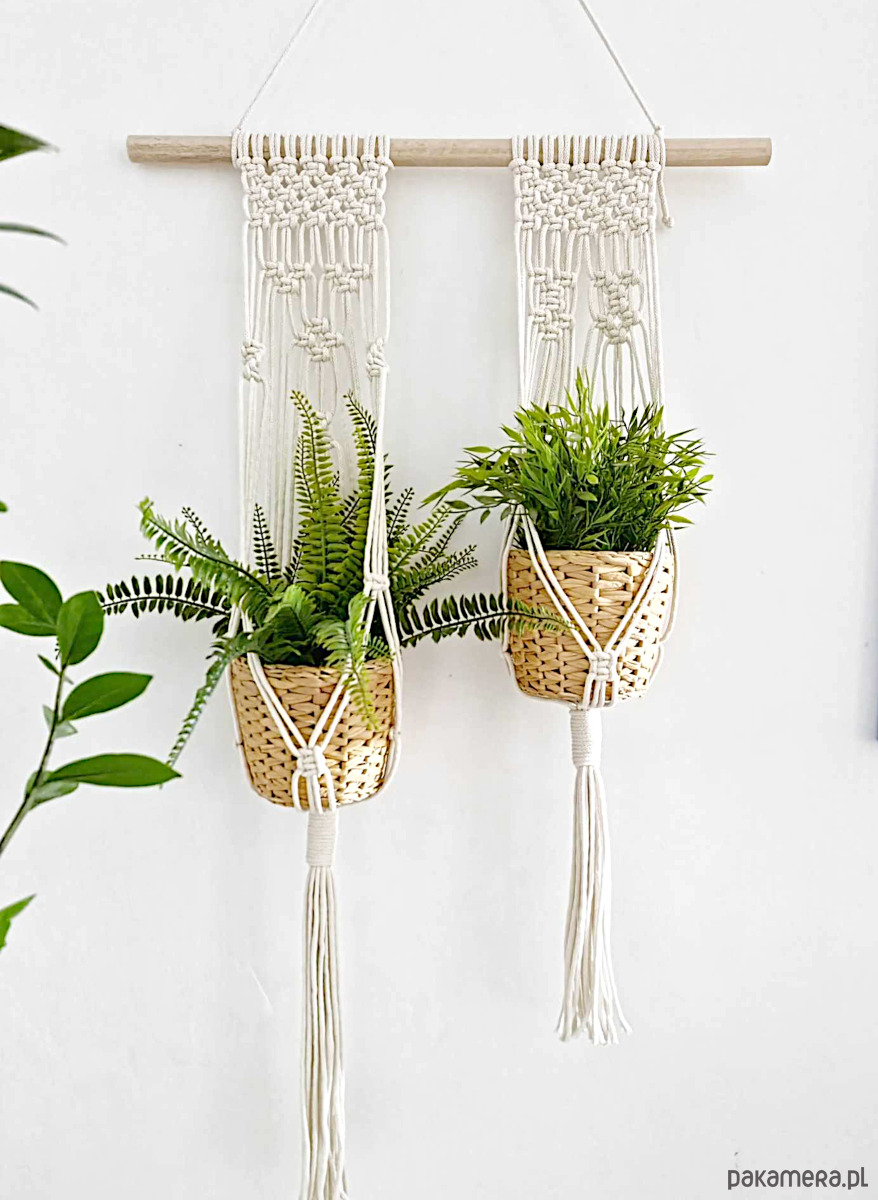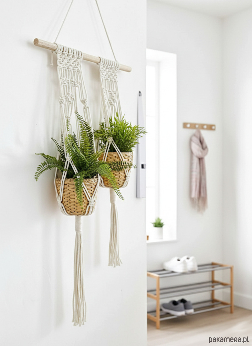 Zapewniając miejsce dla dwóch doniczek, nasz kwietnik ścienny makrama oferuje wyjątkową możliwość wyeksponowania dwóch ulubionych roślin. Jego asymetryczne ułożenie doniczek tworzy dynamiczną i interesującą kompozycję na ścianie, która przyciąga wzrok i dodaje głębi wnętrzu.