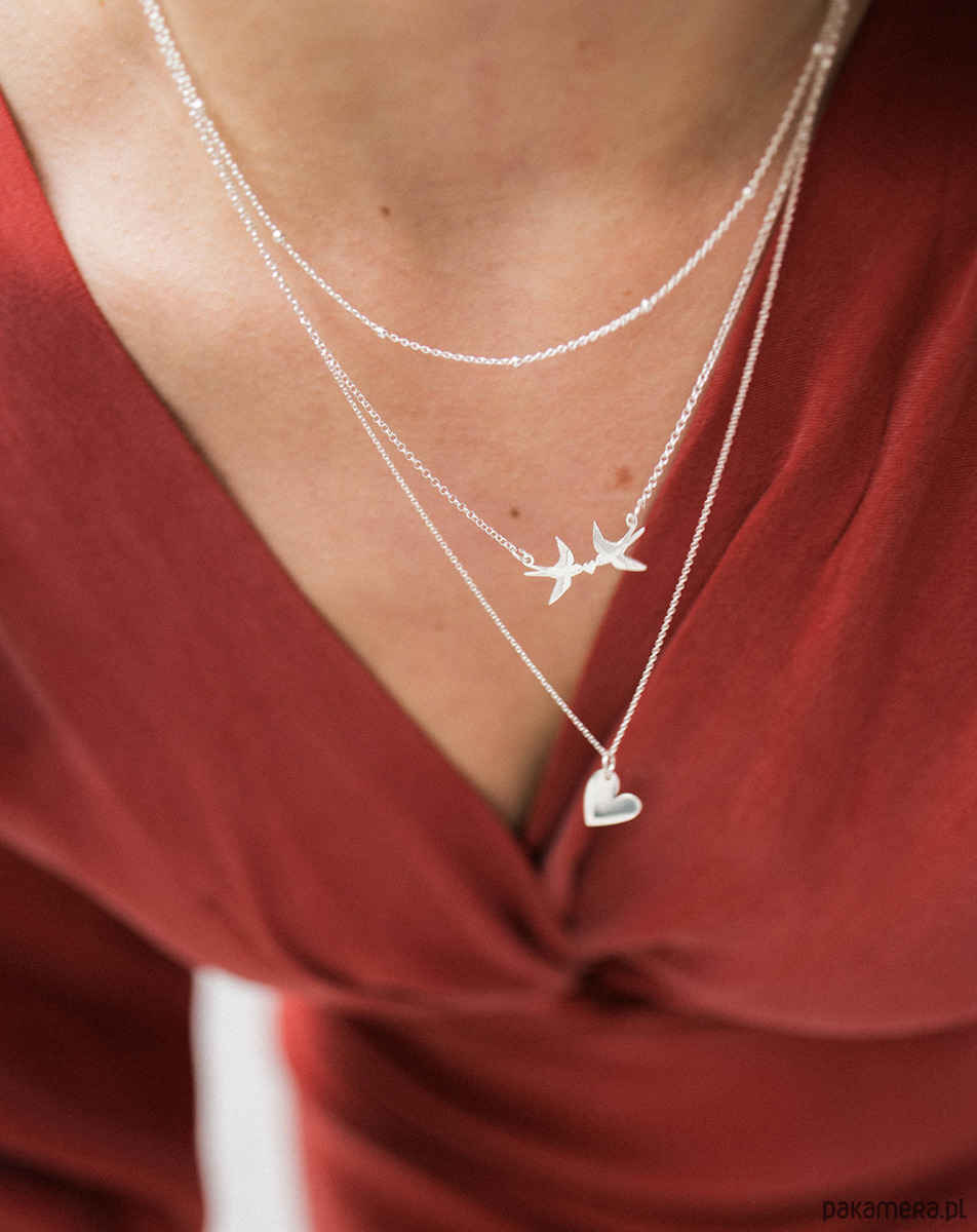 2. Naszyjnik podwójny srebrny z sercem
