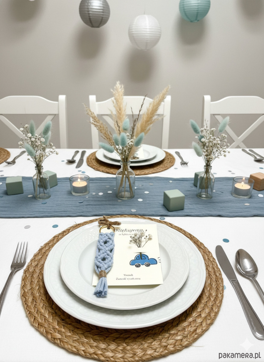 Podziękowania na baby shower, breoloczek makrama niebieski