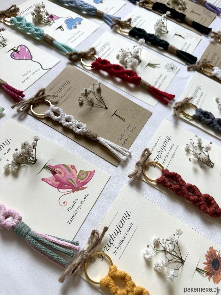 1. Oferujemy breloczki makrama w różnych kolorach, aby dopasować je do charakteru Twojego wesela.
